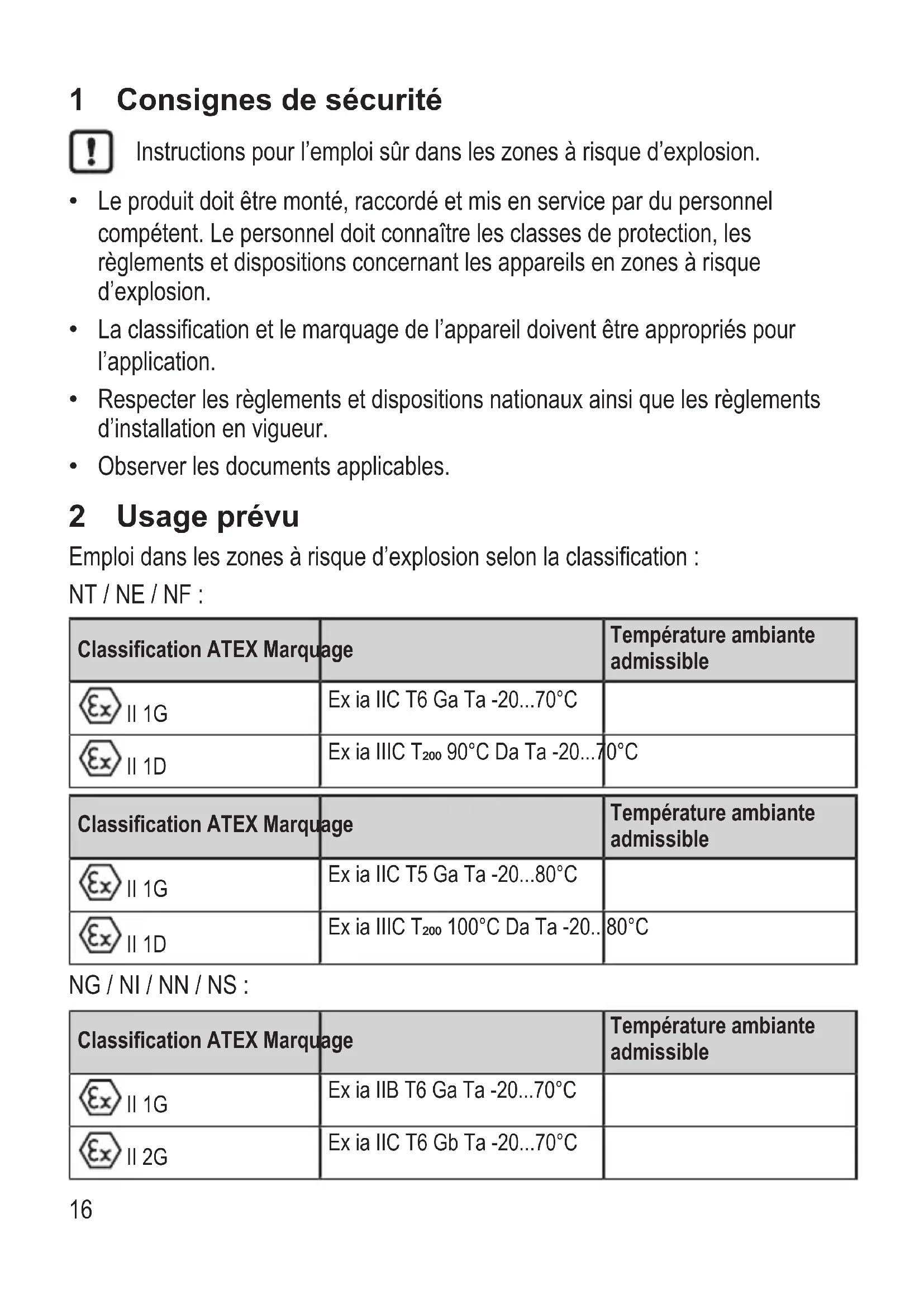 1. Selon la directive ATEX 2014/34/UE la notice d‘utilisation originale et une traduction de cette notice dans