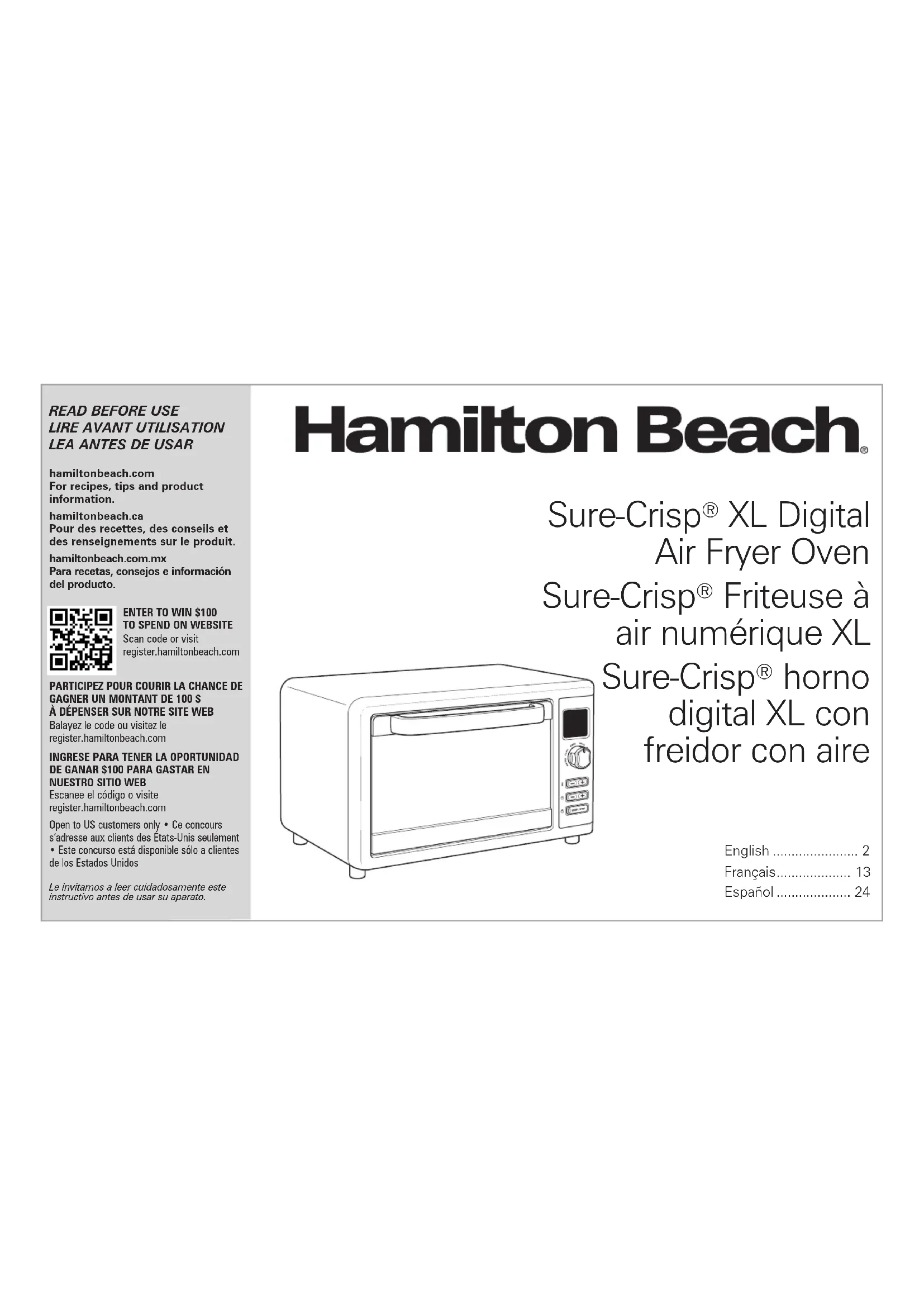 Retrouvez gratuitement la notice de l'appareil SureCrisp XL 31390 HAMILTON BEACH au format PDF.