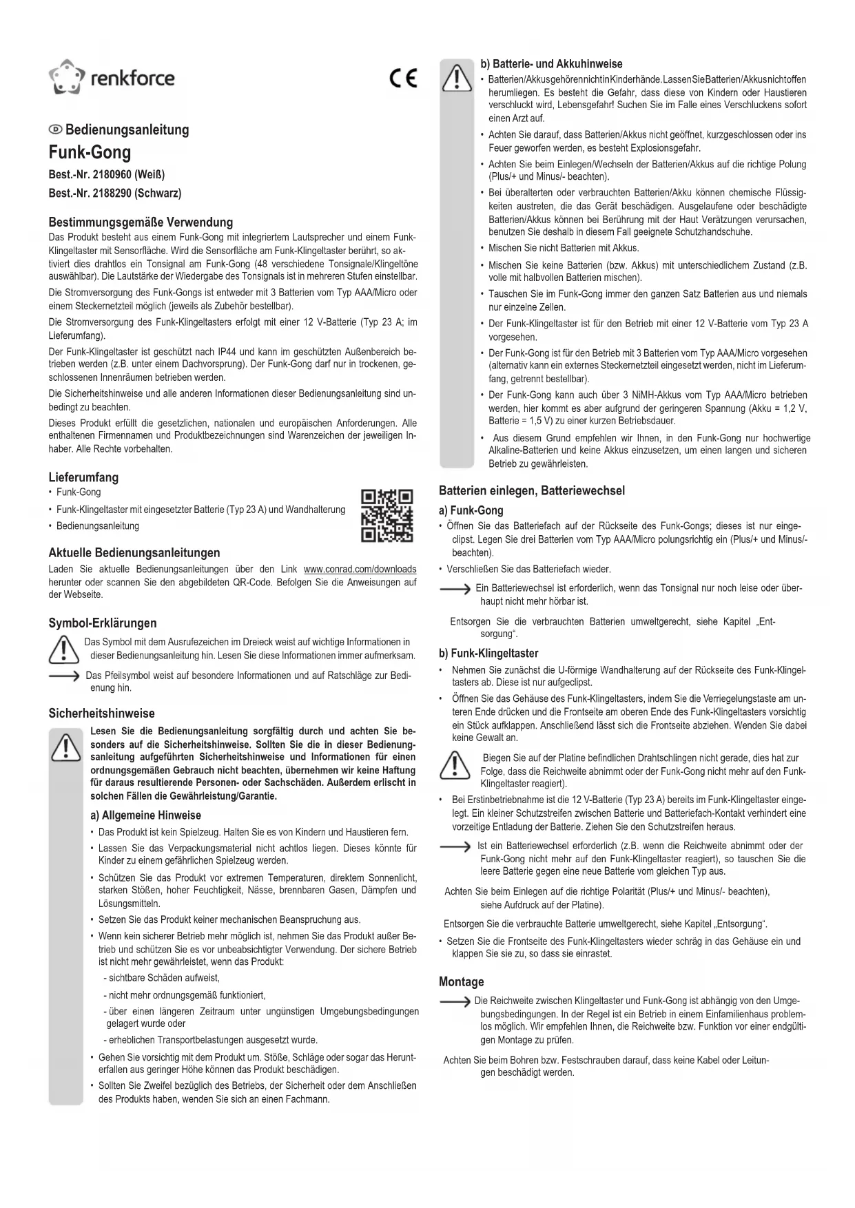RF4361920 - Sonnette de portes Renkforce - Notice d'utilisation et mode d'emploi gratuit