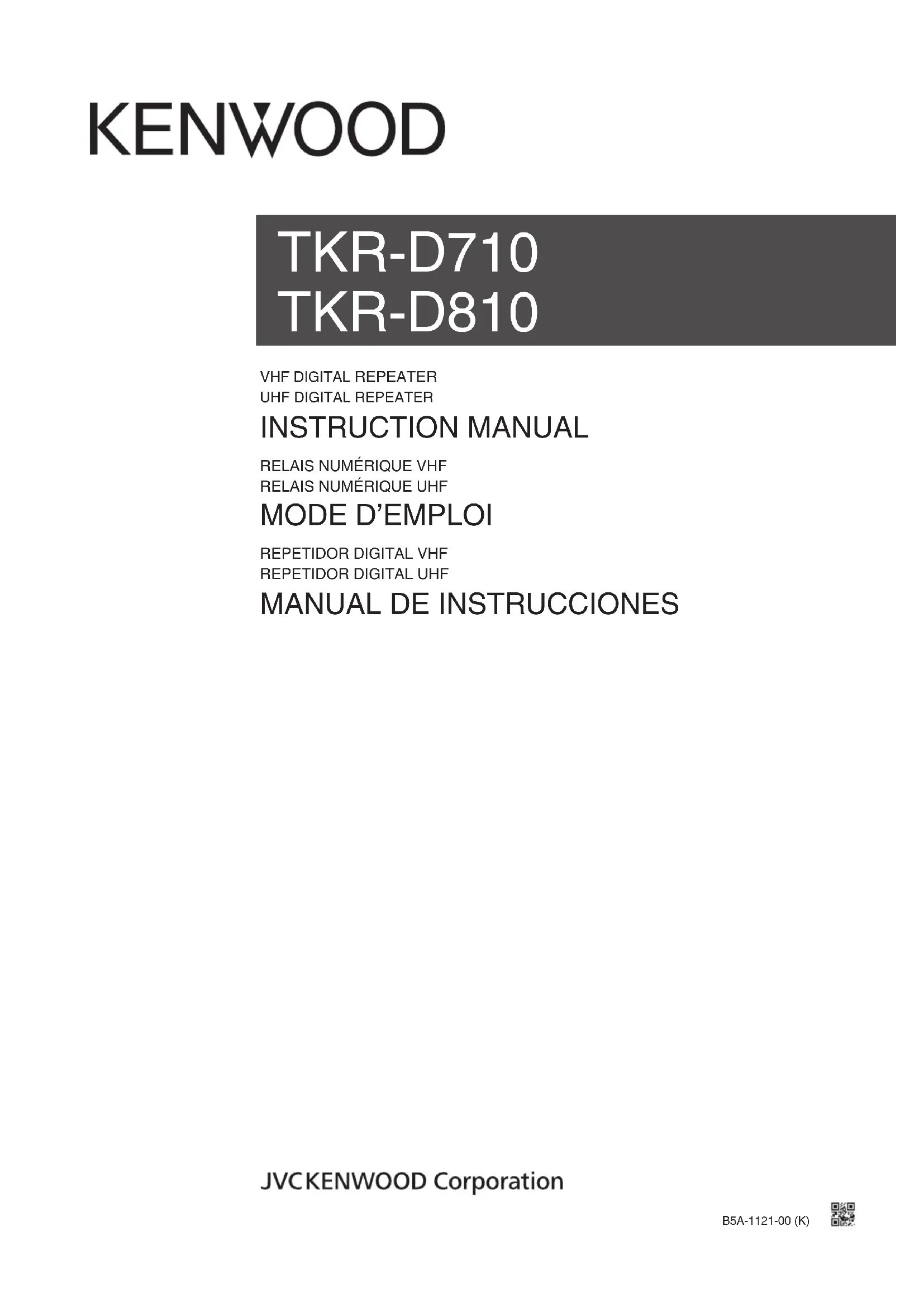 Téléchargez la notice de votre Recepteur au format PDF gratuitement ! Retrouvez votre notice TKRD710 - KENWOOD et reprennez votre appareil électronique en main. Sur cette page sont publiés tous les documents nécessaires à l'utilisation de votre appareil TKRD710 de la marque KENWOOD.