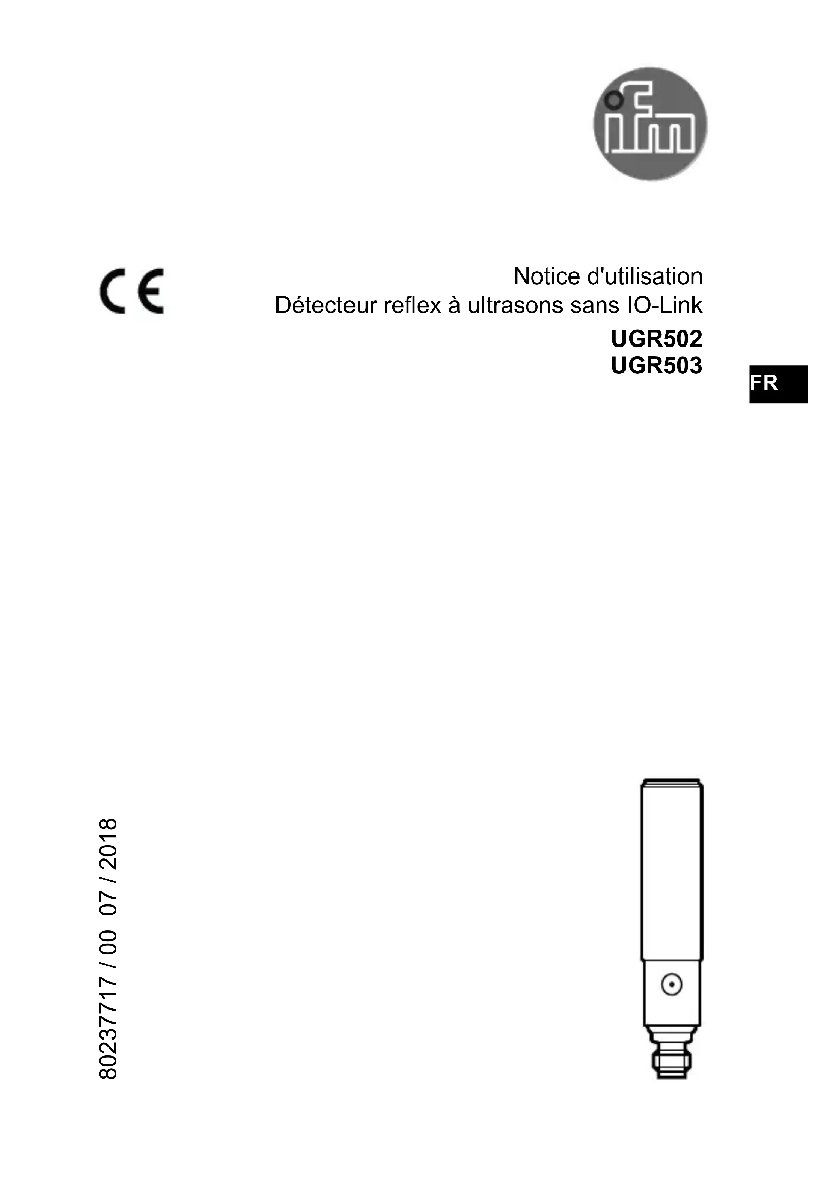 Téléchargez la notice de votre Capteur de porte/fenêtre au format PDF gratuitement ! Retrouvez votre notice UGR503 - IFM et reprennez votre appareil électronique en main. Sur cette page sont publiés tous les documents nécessaires à l'utilisation de votre appareil UGR503 de la marque IFM.