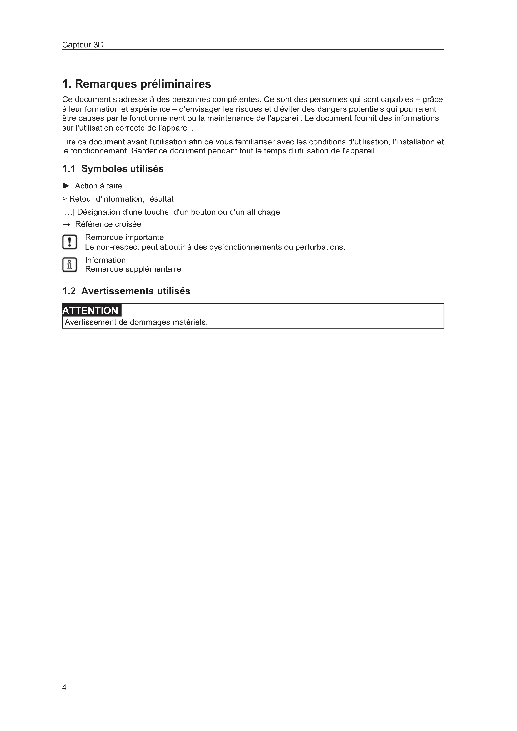 ATTENTION Avertissement de dommages matériels.5 Capteur 3D