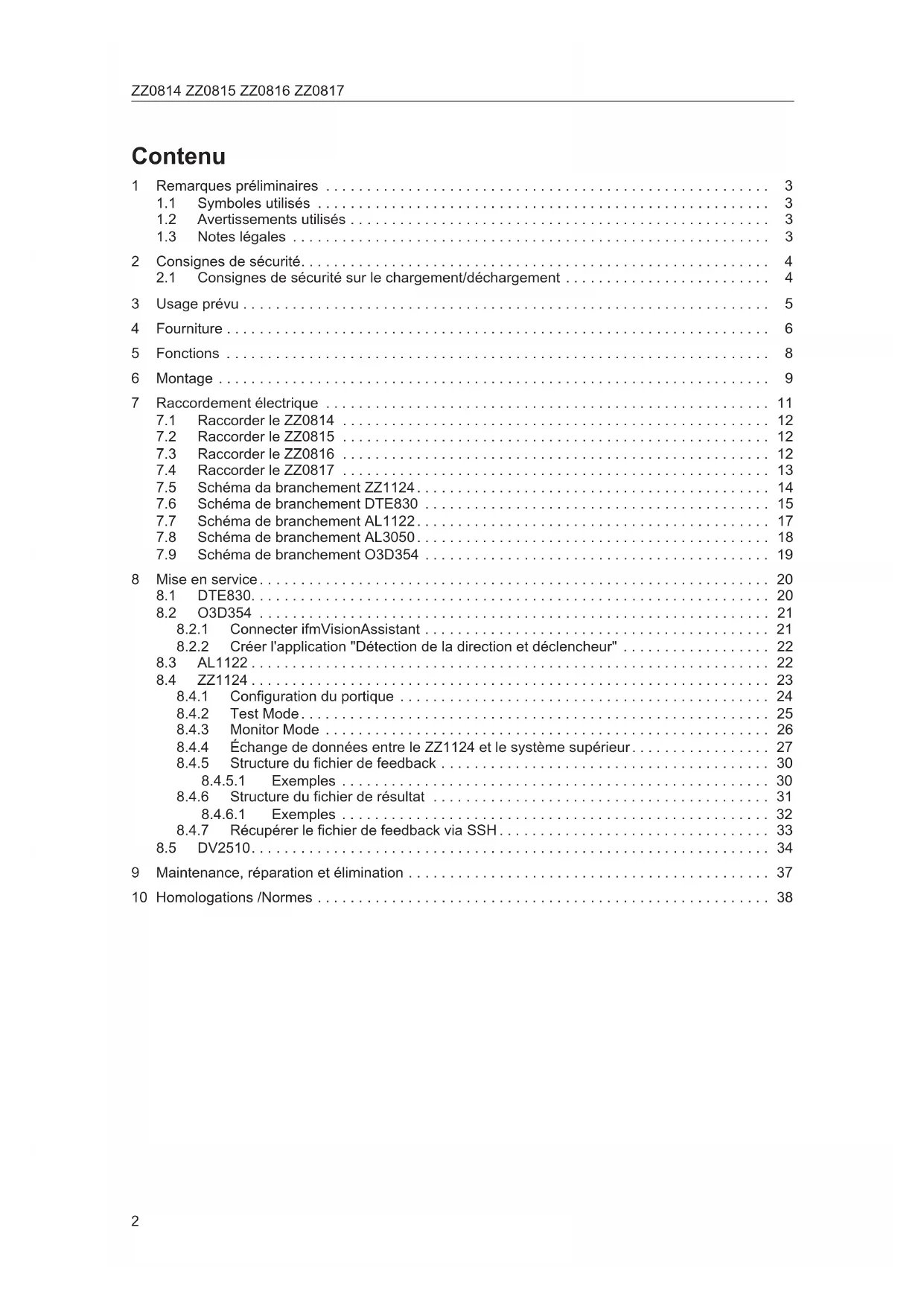 4 Fourniture Les kits ZZ081x sont divisés en portiques et en détection du sens de chargement.