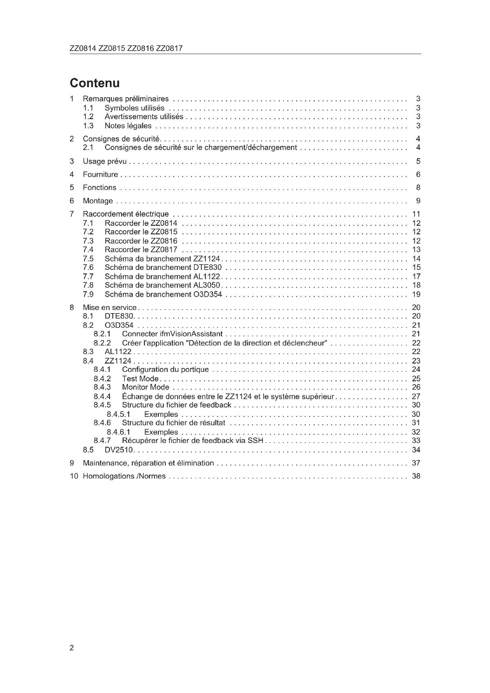 7.1 Raccorder le ZZ0814 12 7.2 Raccorder le ZZ0815 12 7.3 Raccorder le ZZ0816 12 7.4 Raccorder le ZZ0817 13 7.5 Schéma de branchement ZZ1124 14 7.6 Schéma de branchement DTE830 15 7.7 Schéma de branchement AL1122 17 7.8 Schéma de branchement AL3050 18 7.9 Schéma de branchement O3D354 19