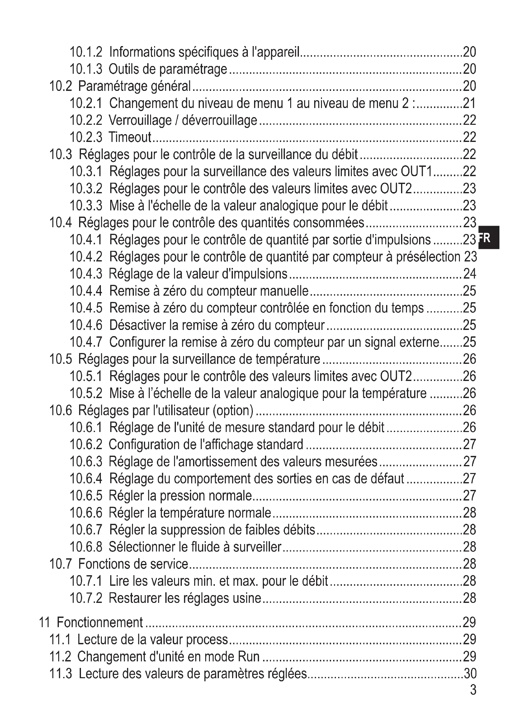 10.3 Réglages pour le contrôle de la surveillance du débit ...............................22