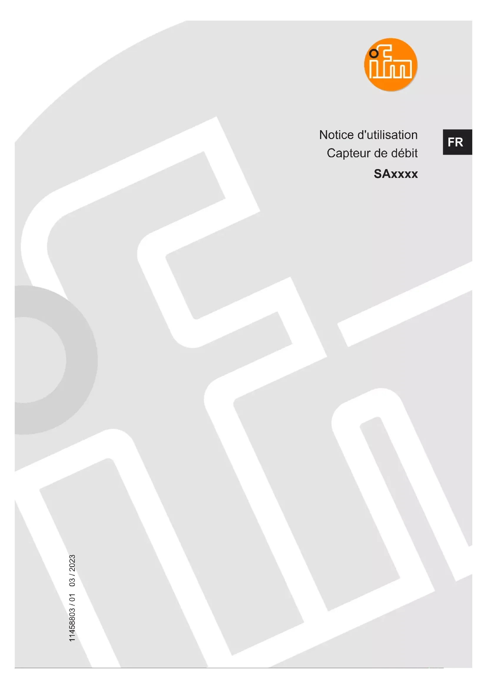 Notice d'utilisation Capteur de débit SAxxxx 11458803 / 0103 / 2023 FRSAxxxx Capteur de débit
