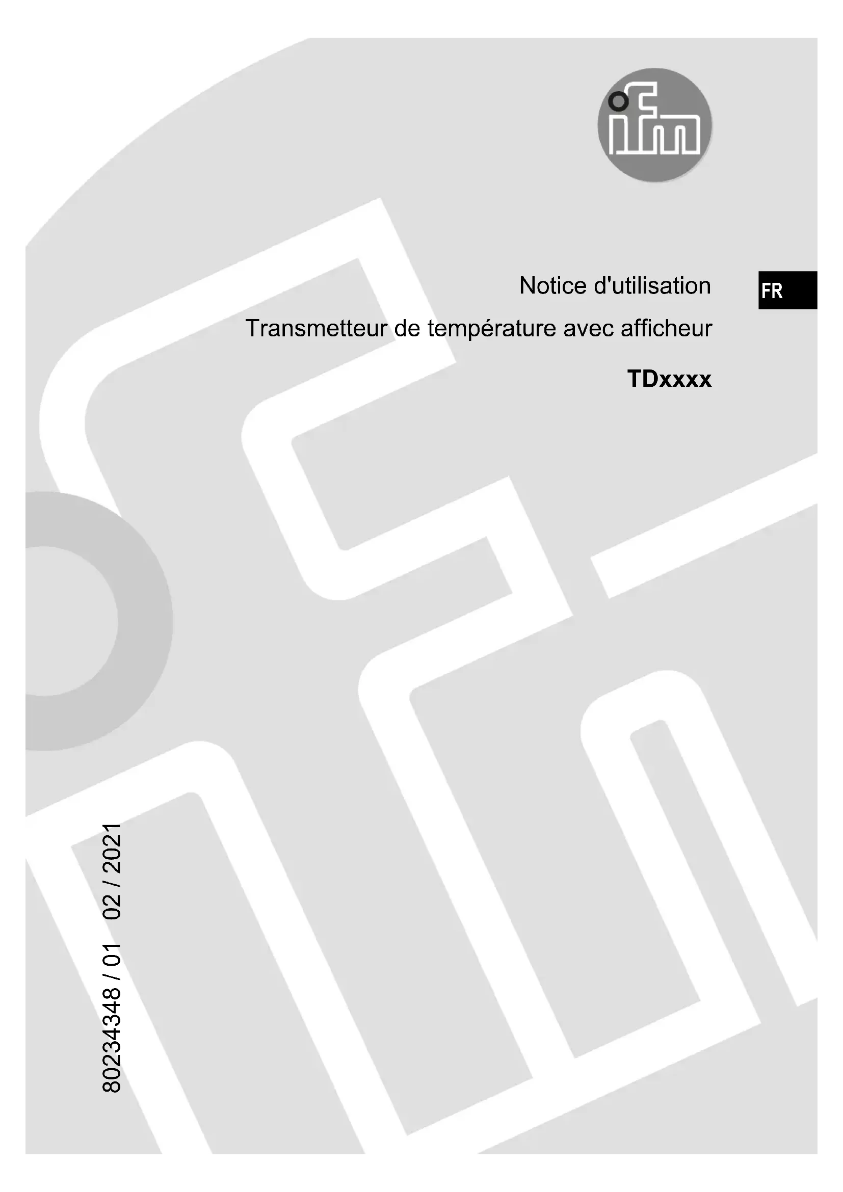 Notice d'utilisation Transmetteur de température avec afficheur TDxxxx 80234348 / 0102 / 2021 FR2 Contenu 1 Remarques préliminaires ............................................................................... 3