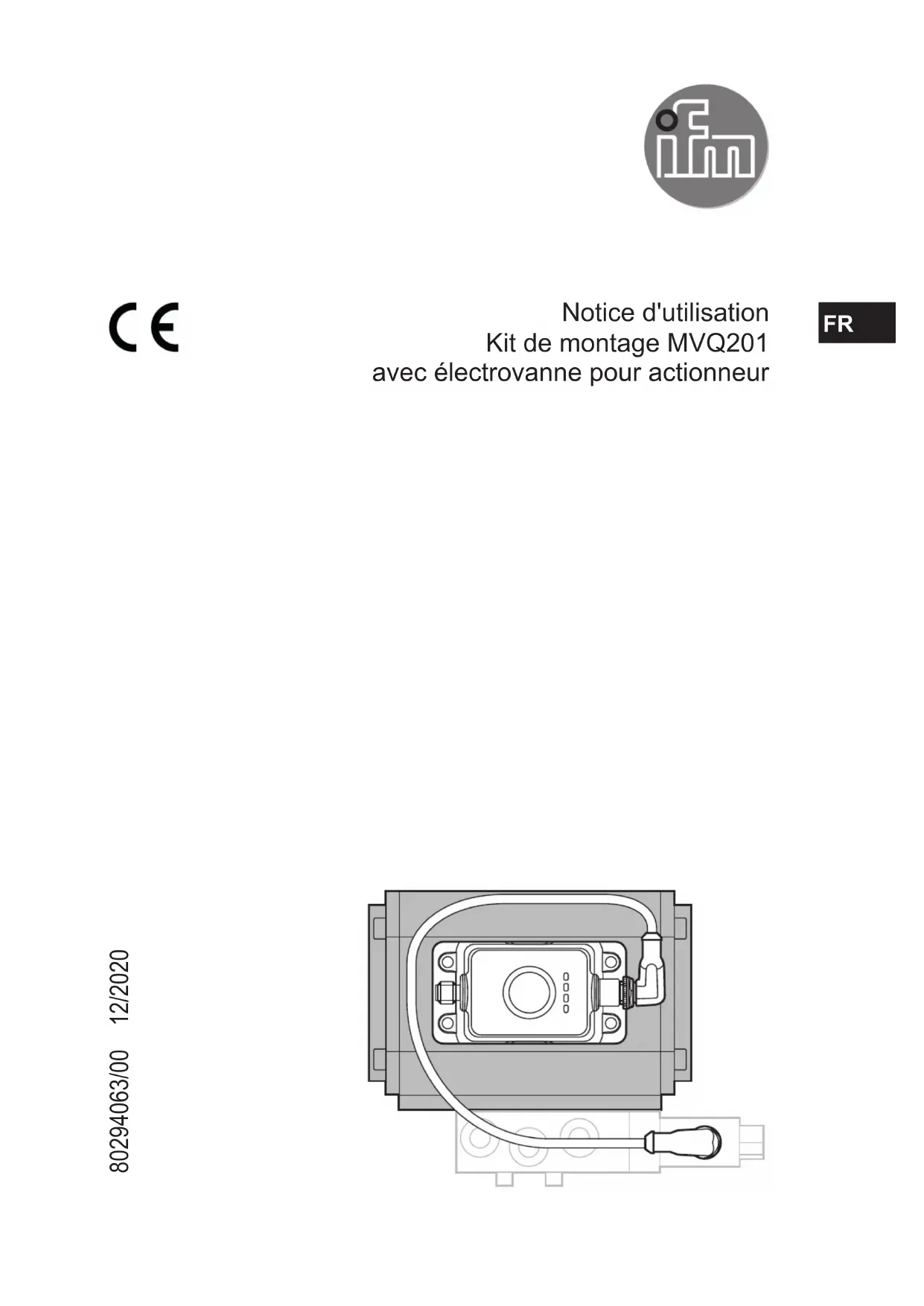Notice d'utilisation Kit de montage MVQ201 avec électrovanne pour actionneur 80294063/00 12/2020 FR2 1 Remarques préliminaires Données techniques, homologations, accessoires et informations supplémentaires sur www.ifm.com. Respecter les notices d'utilisation correspondantes des composants individuels de ce kit.
