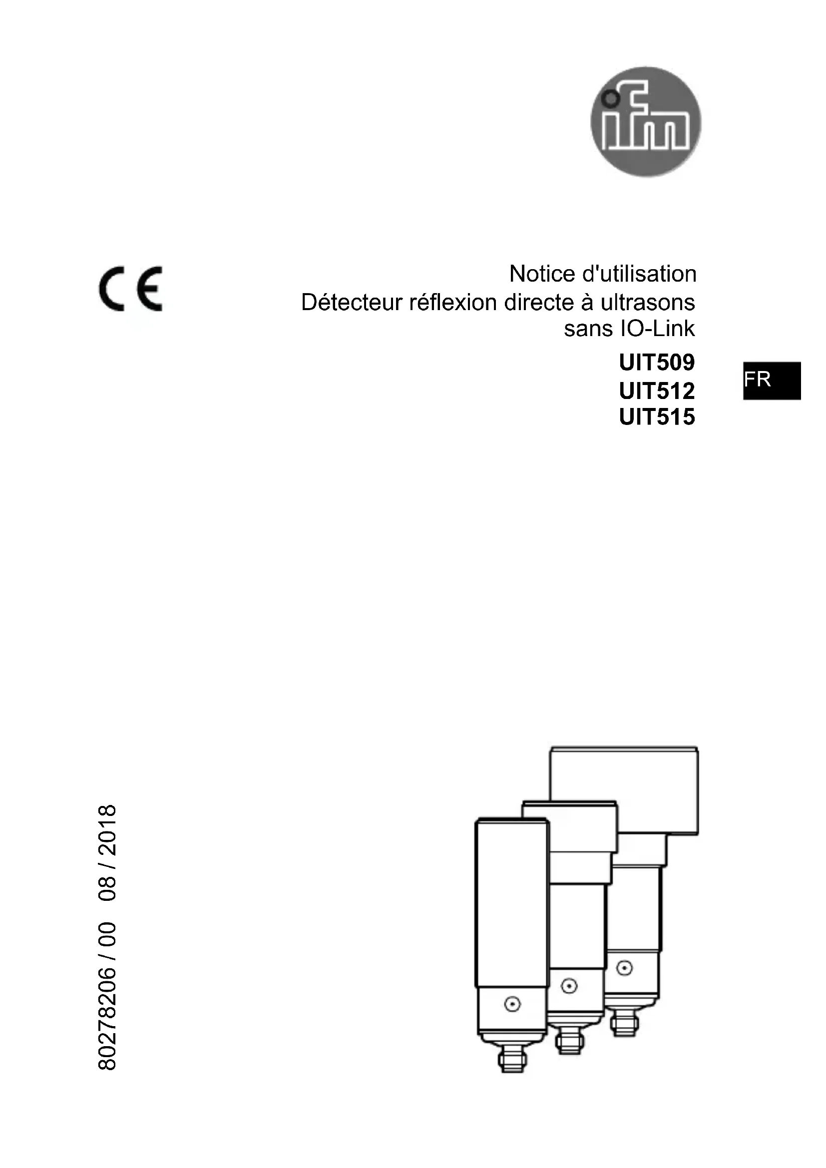 Notice d'utilisation Détecteur réflexion directe à ultrasons sans IO-Link UIT509 UIT512 UIT515 80278206 / 00 08 / 2018 FR2 1 Remarque préliminaire