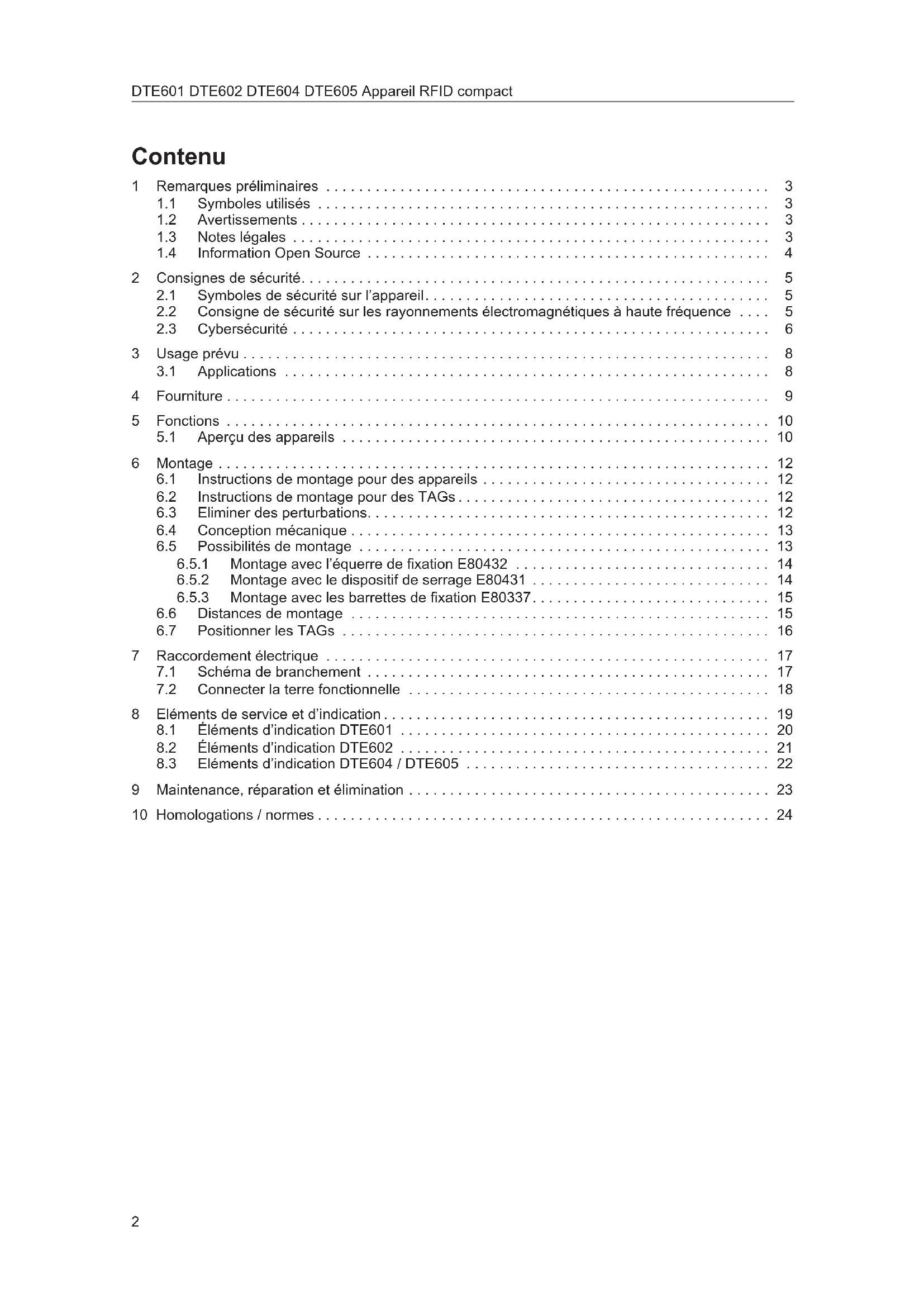 8.1 Éléments d'indication DTE601 20 8.2 Éléments d'indication DTE602 21 8.3 Éléments d'indication DTE604 / DTE605 22