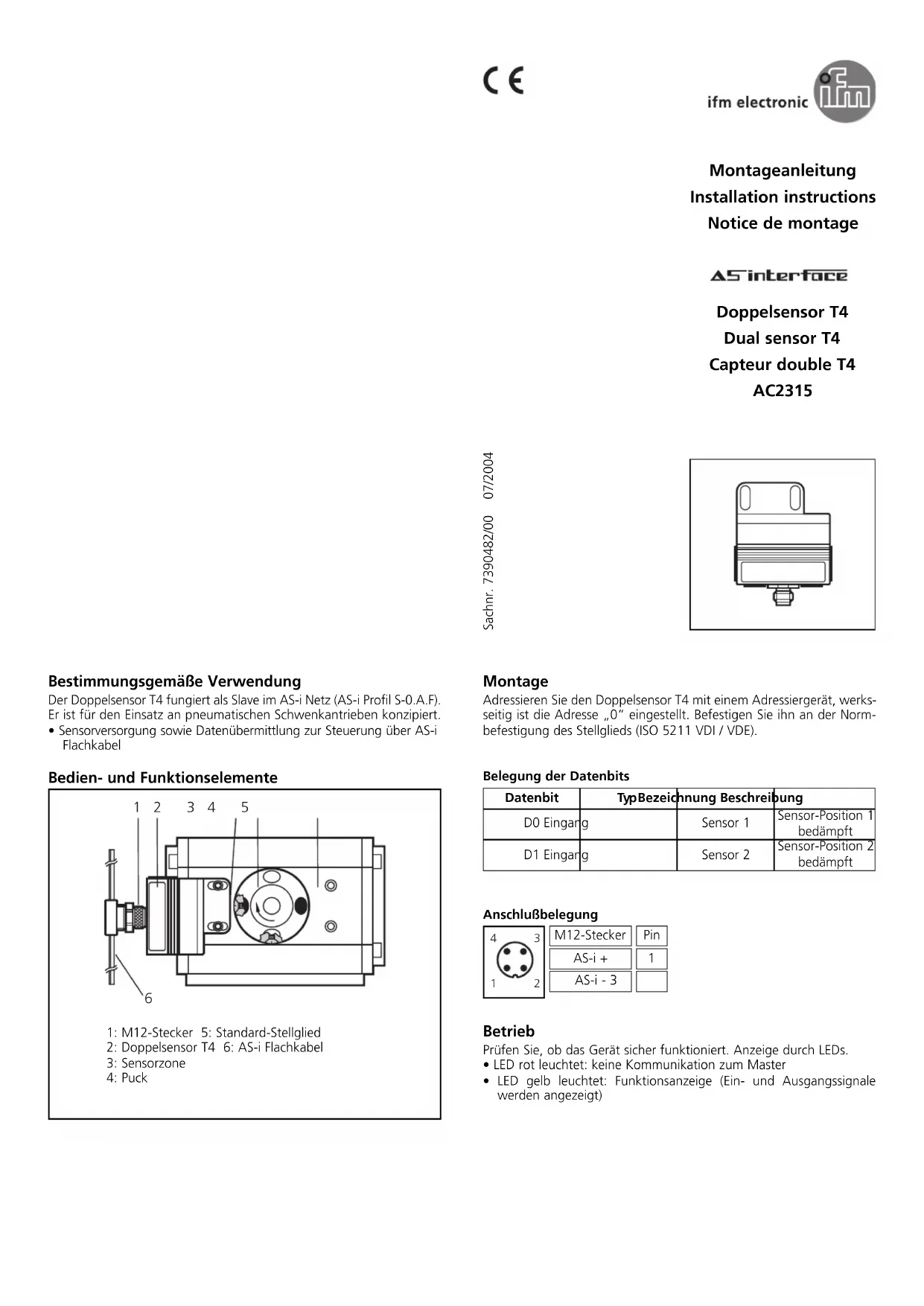 Téléchargez la notice de votre Non catégorisé au format PDF gratuitement ! Retrouvez votre notice AC2315 - IFM et reprennez votre appareil électronique en main. Sur cette page sont publiés tous les documents nécessaires à l'utilisation de votre appareil AC2315 de la marque IFM.