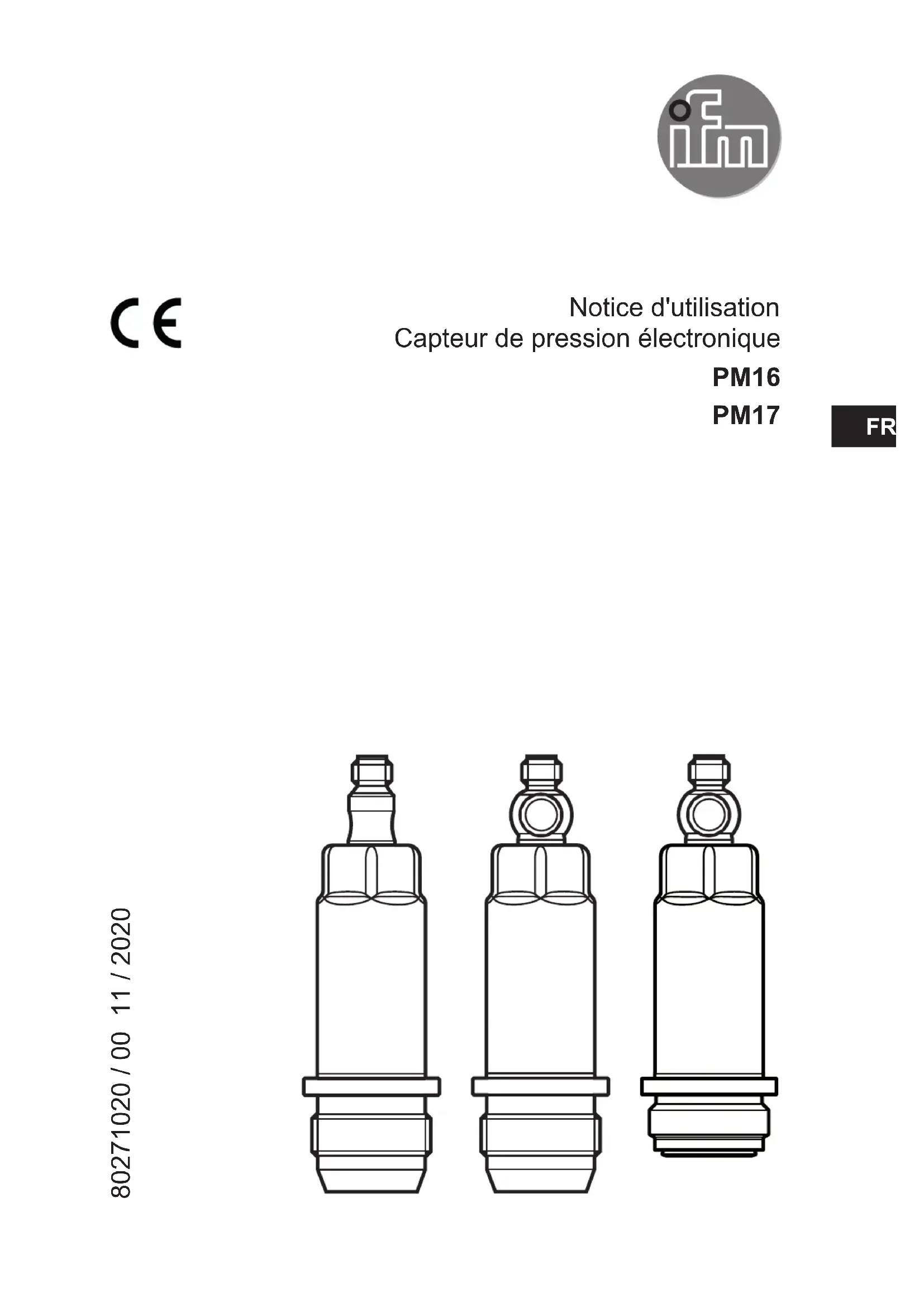 Notice d'utilisation Capteur de pression électronique PM16 PM17 80271020 / 00 11 / 2020 FRFR2 Contenu 1 Remarques préliminaires 3 11 Symboles utilisés 3 2 Consignes de sécurité 4 3 Fonctionnement et caractéristiques 4 31 Applications 5 4 Fonctions 5 41 IO-Link 6 411 Informations générales 6 412 Fonctions disponibles uniquement via la communication IO-Link 6 413 Mise en service via IO-Link 6 414 Données process via IO-Link 6 42 Etat défini en cas de défaut 7 43 Modes de fonctionnement 7 431 Fonctionnement 2 fils 7 432 Fonctionnement 3 fils 7 44 Sortie analogique 7 5 Montage 9 51 Raccord G1A Aseptoflex Vario (PM17xx) 10 52 Pour applications aseptiques selon 3A 11 53 Pour applications aseptiques selon EHEDG 12 54 Raccord cône d'étanchéité G1A (PM16xx) 12 55 Membrane d'échappement avec capuchon protecteur (pas PM1602) 14 551 Fonctionnement de la membrane d'échappement 14 552 Ajustage du couvercle du système de filtrage 14 56 Couvercle du système de filtrage 15 6 Raccordement électrique 17 7 Paramétrage 18 71 Paramétrage via PC 18 72 Paramétrage via le Memory Plug 18 73 Apprentissage de l'offset via le bouton d'apprentissage 19 731 Mise à l'échelle de la valeur analogique 20 732 Régler l'unité par défaut de la mesure (option)203