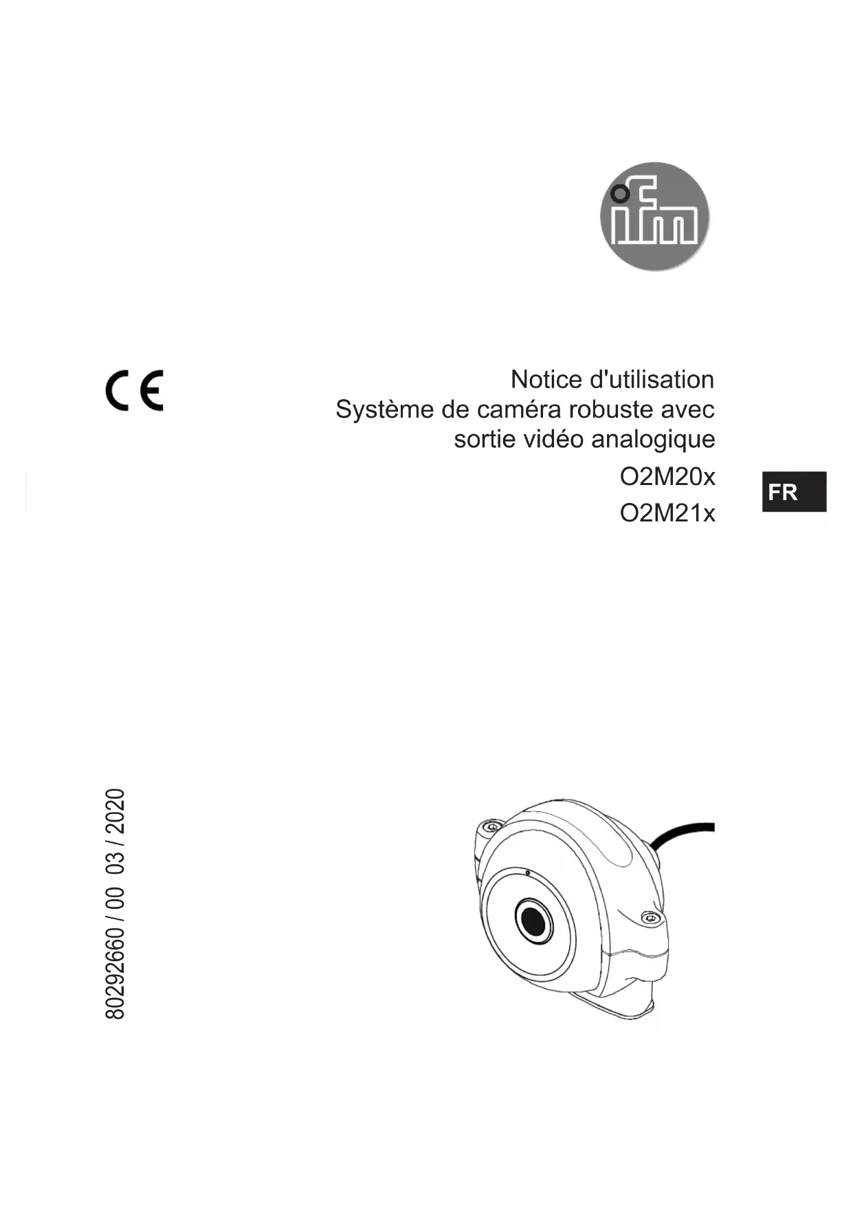 Notice d'utilisation Système de caméra robuste avec sortie vidéo analogique O2M20x O2M21x 80292660 / 00 03 / 20202 Contenu 1 Remarques préliminaires 3 11 Symboles utilisés 3 12 Copyright et marques 3 2 Consignes de sécurité 4 3 Fonctionnement et caractéristiques 5 31 Caractéristiques 6 4 Fourniture 6 5 Accessoires 6 6 Montage 7 61 Dimensions de montage 7 62 Montage et ajustage de l'appareil 7 63 Lieu de montage 9 7 Raccordement électrique 12 71 Branchement de l'appareil 12 72 Fonctionnement de l'appareil pour les différentes tensions 13 73 Raccordement à une unité de dialogue 14 74 Raccordement à un moniteur 16 741 Raccordement d'une caméra à un moniteur 16 742 Raccordement de deux caméras à un moniteur 16 743 Raccordement de trois caméras à un moniteur 17 744 Raccordement de trois caméras à un moniteur 17 75 Perturbations par influences extérieures 18 8 Maintenance, réparation et élimination 18 9 Homologations/normes 183