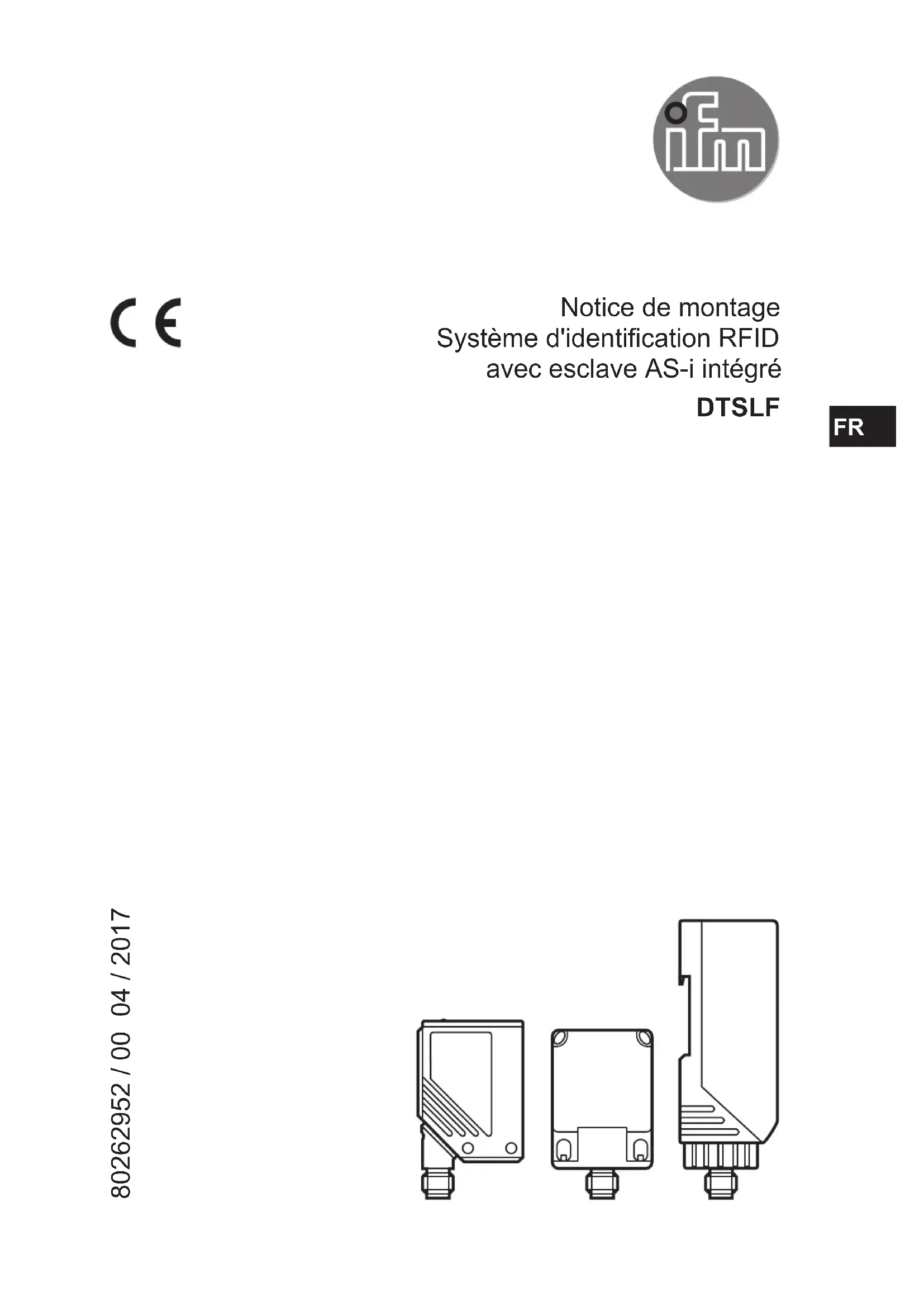 Notice de montage Système d'identification RFID avec esclave AS-i intégré DTSLF 80262952 / 00 04 / 2017 FR2 Contenu 1 Remarque préliminaire 4 11 Symboles utilisés 4 2 Consignes de sécurité 4 21 Général 4 22 Equipements radio 5 23 Perturbations d'appareils électroniques et médicaux 5 3 Fonctionnement et caractéristiques 5 4 Fonction 5 41 Principe de fonctionnement 5 42 Aperçu des types 6 5 Montage 7 51 Notices de montage générales 7 52 Remarques sur le montage des TAG 7 53 DTA10x 8 531 Fixation 8 532 Distances de montage 8 533 Positionnement des TAG 9 534 L'orientation des TAG 9 535 Distances de lecture/écriture 10 54 DTA20x 10 541 Conception mécanique 10 542 Orientation de la face active 11 543 Fixation 11 544 Distances de montage 12 545 Positionnement des TAG 12 546 L'orientation des TAG 13 547 Distances de lecture/écriture 13 55 DTA30x 14 551 Fixation 14 552 Distances de montage 14 553 Positionnement des TAG 15 554 L'orientation des TAG 15 555 Distances de lecture/écriture 15 556 Orienter l'insert du connecteur163