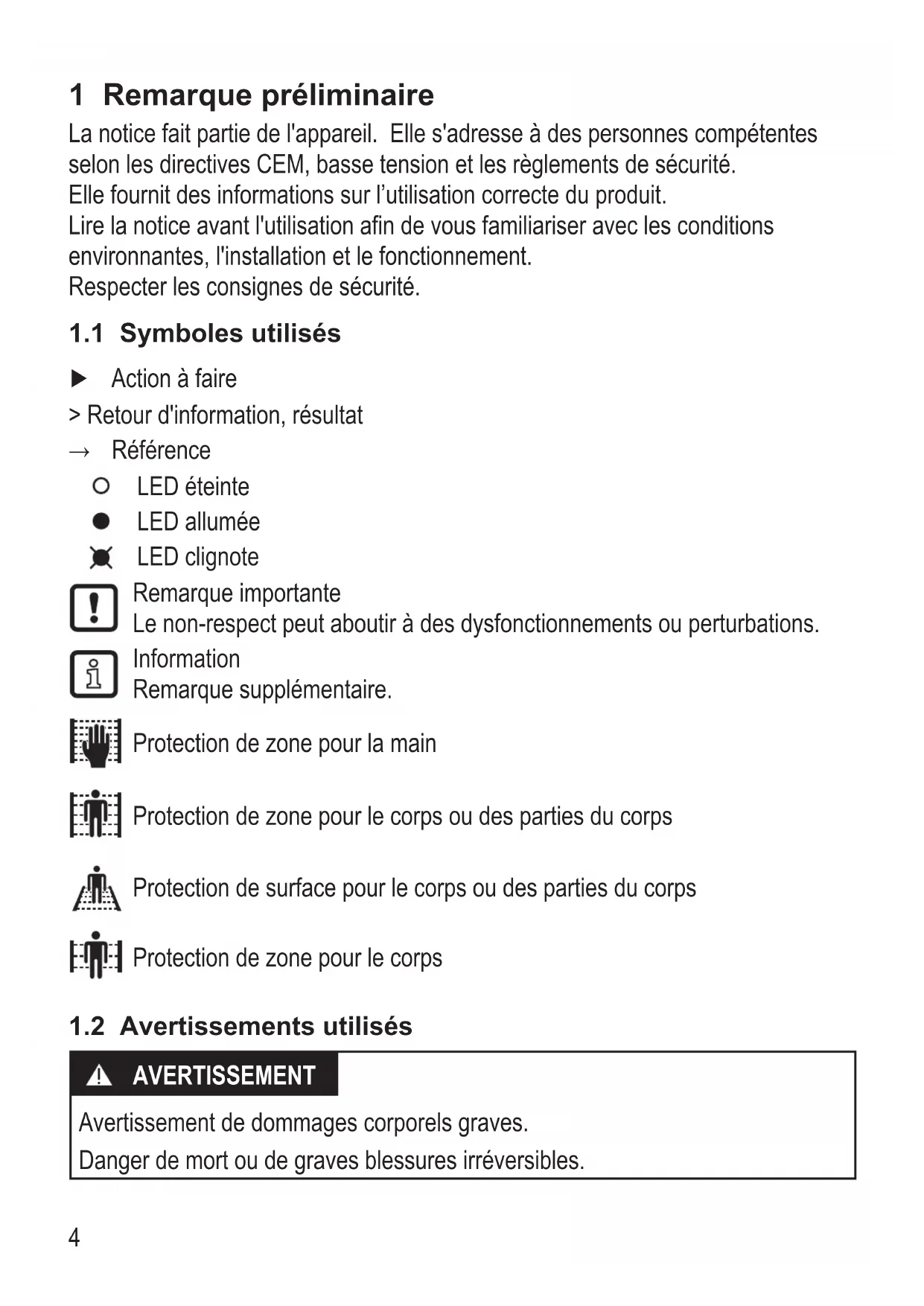 1.1 Symboles utilisés 4 1.2 Avertissements utilisés 4