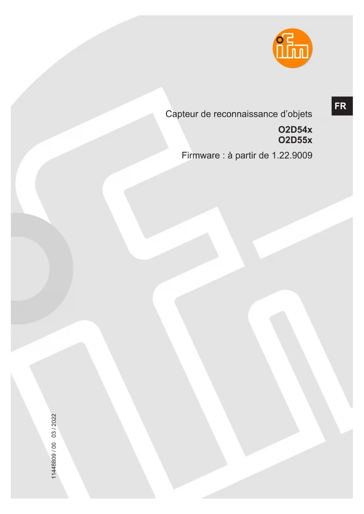 Capteur de reconnaissance d’objets O2D54x O2D55x Firmware : à partir de 1.22.9009 11448809 / 0003 / 2022 FRO2D54x O2D55x Capteur de reconnaissance d’objets