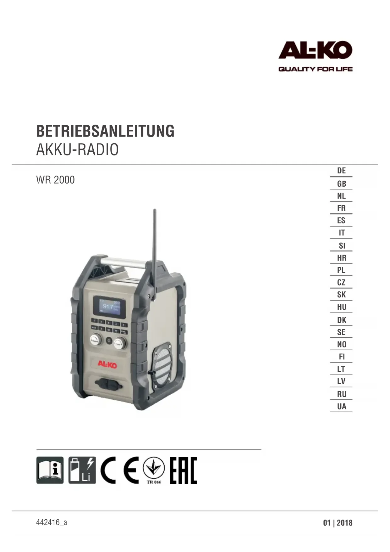 WR 2000 - Radio AL-KO - Notice d'utilisation et mode d'emploi gratuit