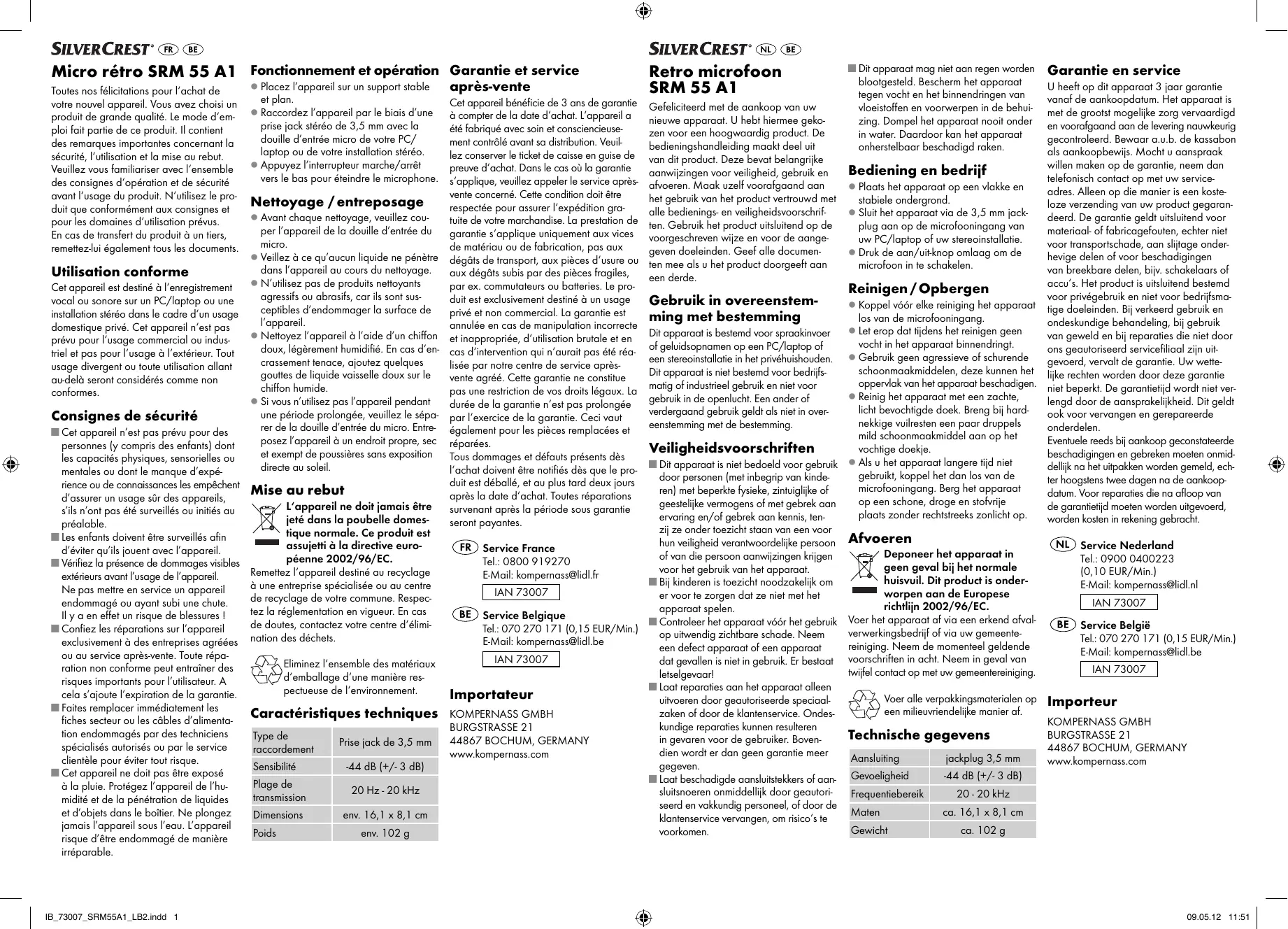 seerd en vakkundig personeel, of door de Maten ca. 16,1 x 8,1 cm klantenservice vervangen, om risico‘s te Gewicht ca. 102 g voorkomen. Cet appareil bénéficie de 3 ans de garantie à compter de la date d‘achat. L‘appareil a été fabriqué avec soin et consciencieusement contrôlé avant sa distribution. Veuillez conserver le ticket de caisse en guise de preuve d‘achat. Dans le cas où la garantie s‘applique, veuillez appeler le service aprèsvente concerné. Cette condition doit être respectée pour assurer l‘expédition gratuite de votre marchandise. La prestation de garantie s‘applique uniquement aux vices de matériau ou de fabrication, pas aux dégâts de transport, aux pièces d‘usure ou aux dégâts subis par des pièces fragiles, par ex. commutateurs ou batteries. Le produit est exclusivement destiné à un usage privé et non commercial. La garantie est annulée en cas de manipulation incorrecte et inappropriée, d‘utilisation brutale et en cas d‘intervention qui n‘aurait pas été réalisée par notre centre de service aprèsvente agréé. Cette garantie ne constitue pas une restriction de vos droits légaux. La durée de la garantie n‘est pas prolongée par l‘exercice de la garantie. Ceci vaut également pour les pièces remplacées et réparées. Tous dommages et défauts présents dès l‘achat doivent être notifiés dès que le produit est déballé, et au plus tard deux jours après la date d‘achat. Toutes réparations survenant après la période sous garantie seront payantes. Gefeliciteerd met de aankoop van uw nieuwe apparaat. U hebt hiermee gekozen voor een hoogwaardig product. De bedieningshandleiding maakt deel uit van dit product. Deze bevat belangrijke aanwijzingen voor veiligheid, gebruik en afvoeren. Maak uzelf voorafgaand aan het gebruik van het product vertrouwd met alle bedienings- en veiligheidsvoorschriften. Gebruik het product uitsluitend op de voorgeschreven wijze en voor de aangegeven doeleinden. Geef alle documenten mee als u het product doorgeeft aan een derde.