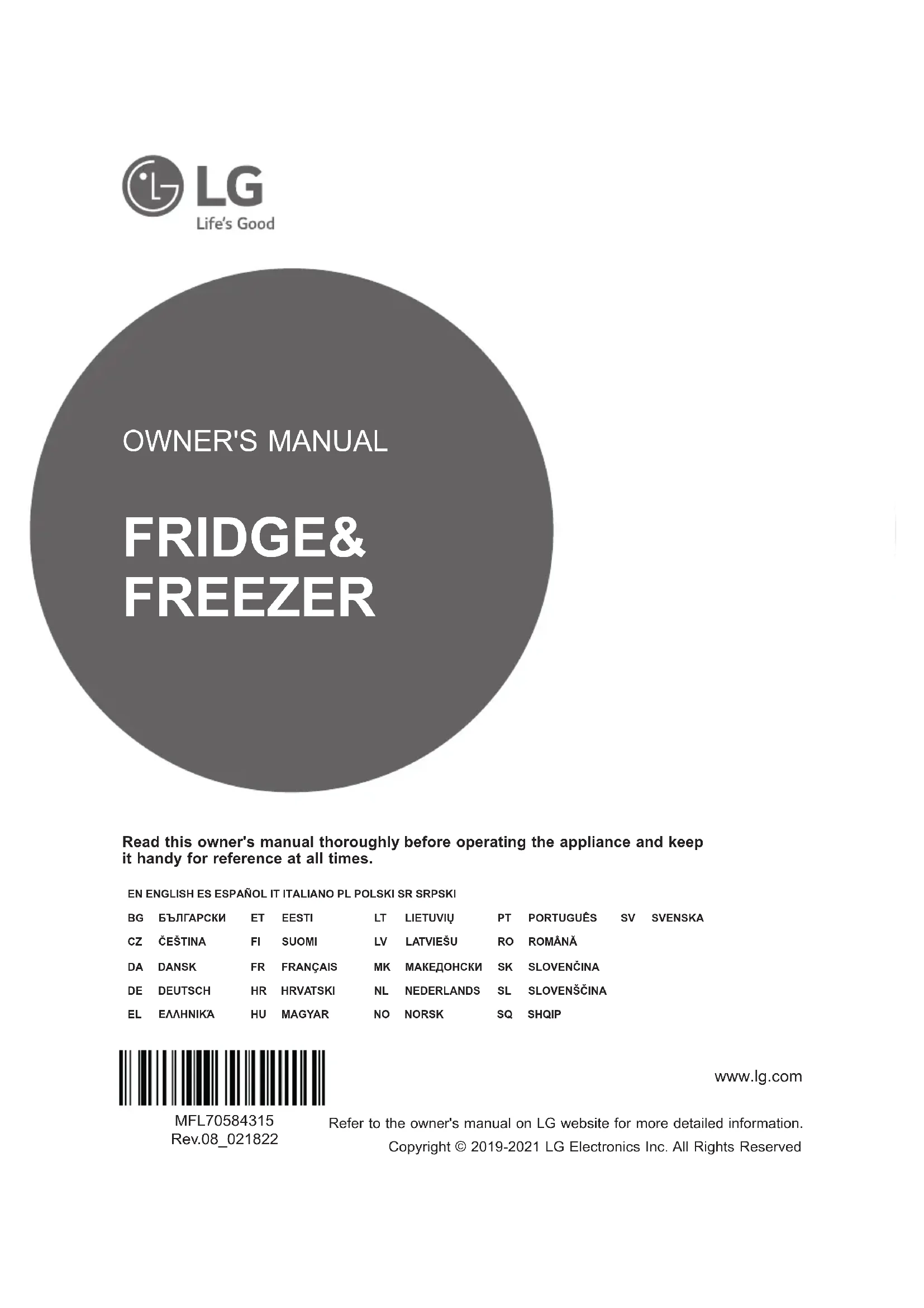 GBB71MCEGN - Congélateur LG - Notice d'utilisation et mode d'emploi gratuit