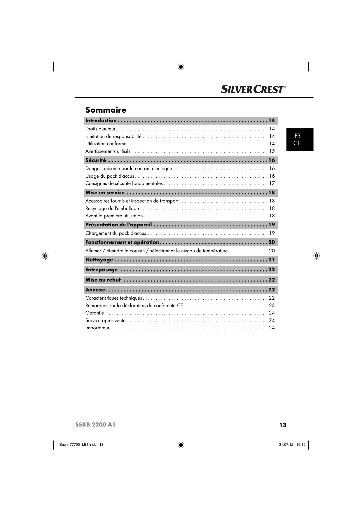 Retrouvez gratuitement la notice de l'appareil SSKB 2200 A1 SILVERCREST au format PDF.