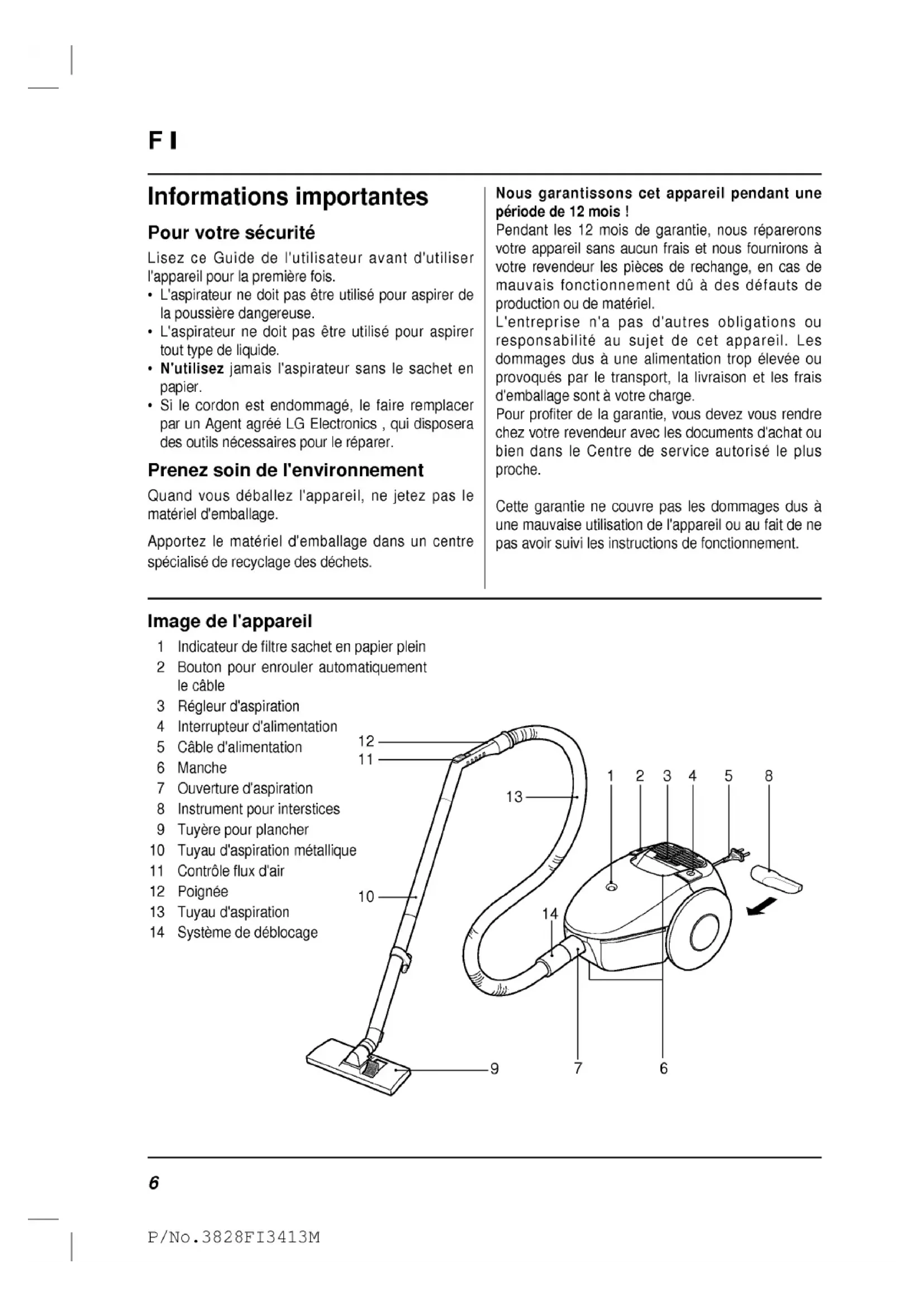 VT2620DE - Aspirateur LG - Notice d'utilisation et mode d'emploi gratuit