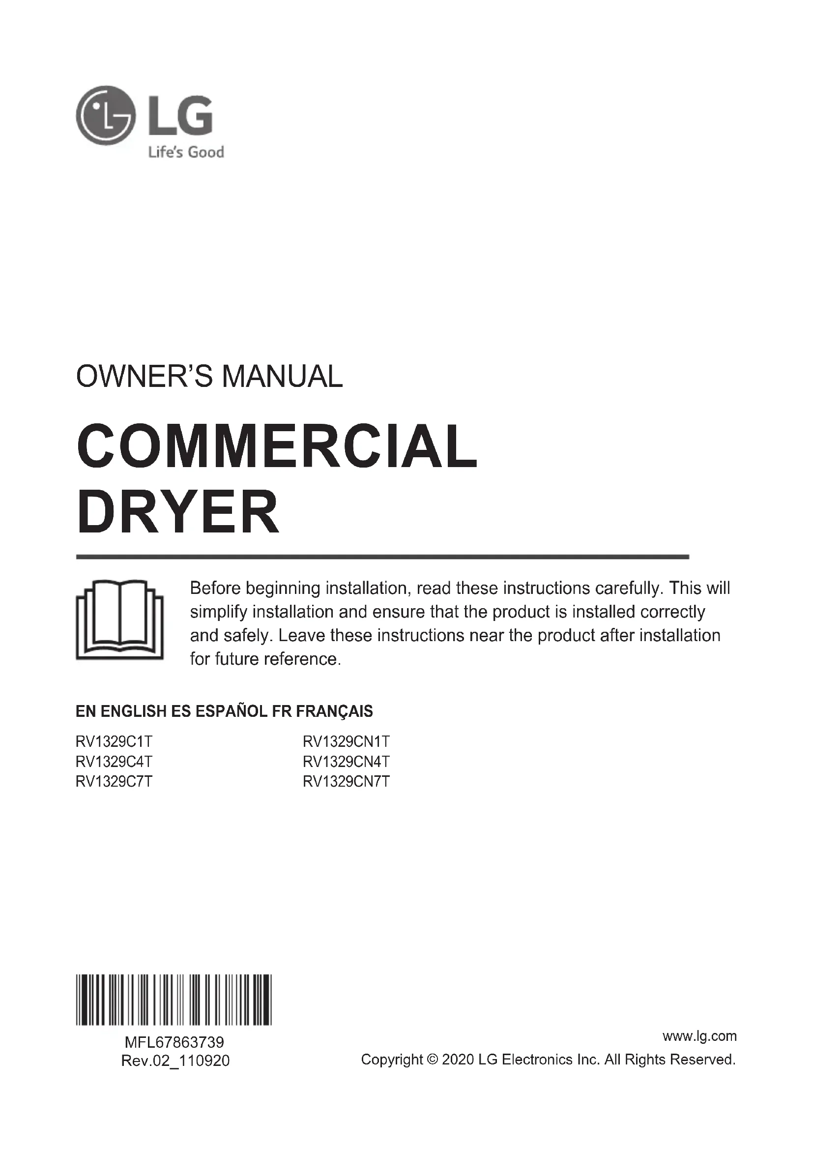 RV1329C7T - Seche linge LG - Notice d'utilisation et mode d'emploi gratuit