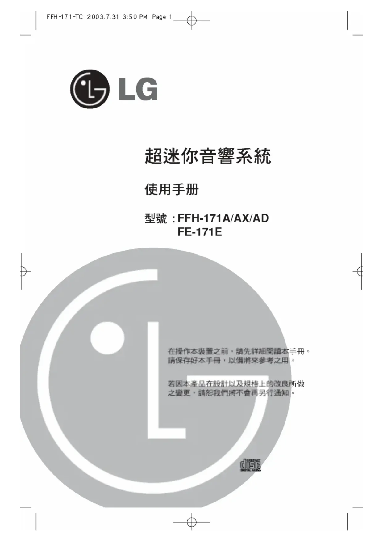 Retrouvez gratuitement la notice de l'appareil FFH171A LG au format PDF.