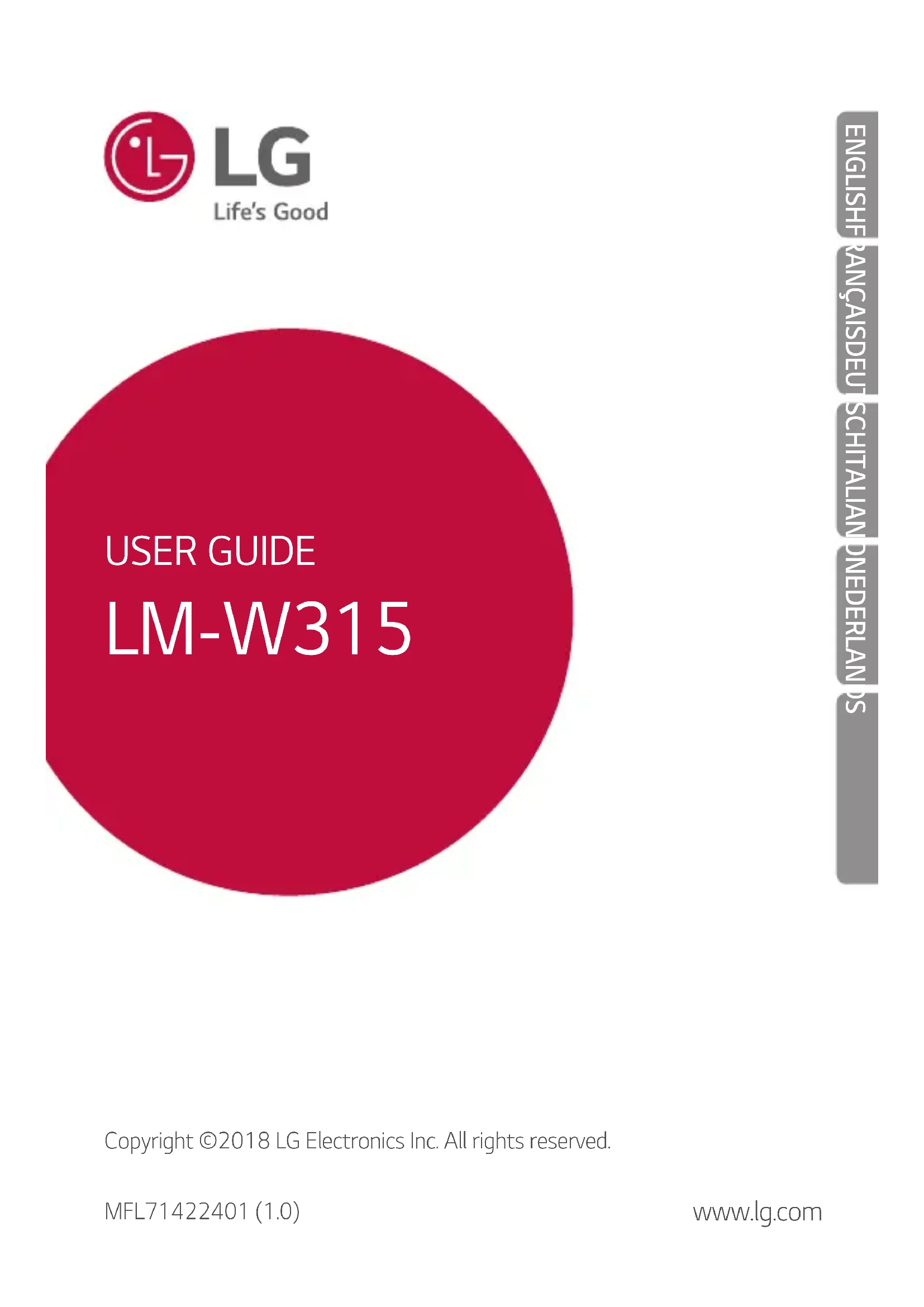 Par la présente, LGElectronics déclare que le produit LM-W315 est conforme aux exigences fondamentales et aux autres dispositions pertinentes de la directive 2014/53/EU. Consultez la Déclaration de conformité sur http://www.lg.com/global/declaration Contactez notre service pour connaître les normes auxquelles ce produit est conforme LG Electronics European Shared Service Center B.V. Krijgsman1,1186DMAmstelveen,TheNetherlands Infos réglementaires (numéro d’identification réglementaire, étiquetage électronique, etc.) Pour connaître les informations concernant la réglementation, allez à Paramètres Système Informations réglementaires.