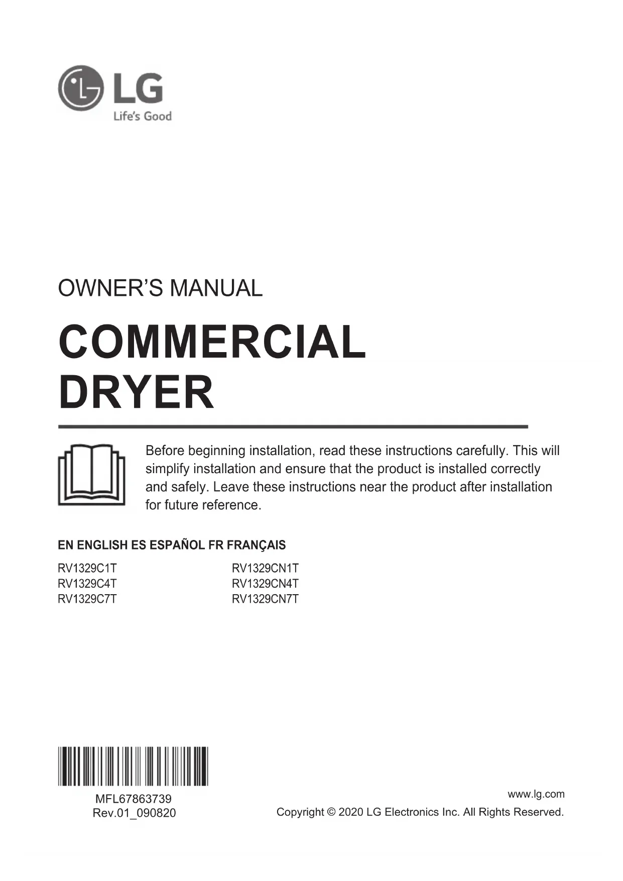 RV1329C4T - Seche linge LG - Notice d'utilisation et mode d'emploi gratuit