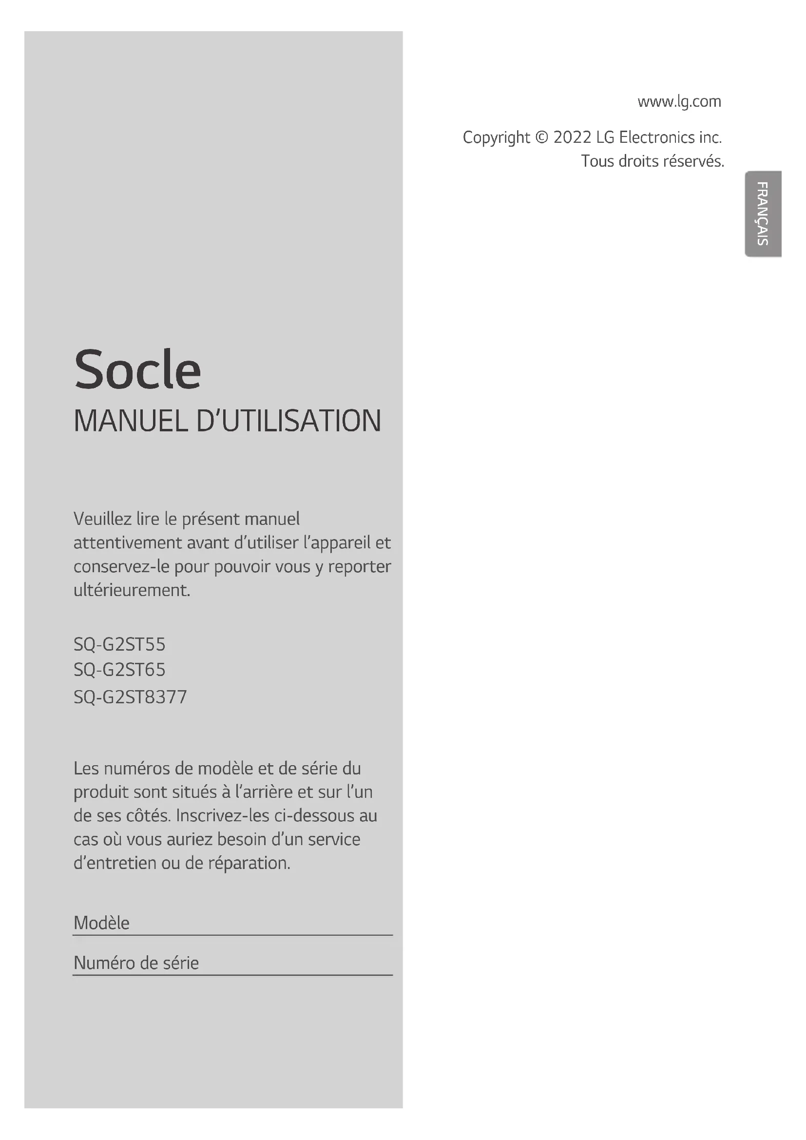 FRANÇAIS Socle www.lg.com Copyright © 2022 LG Electronics inc. Tous droits réservés.
