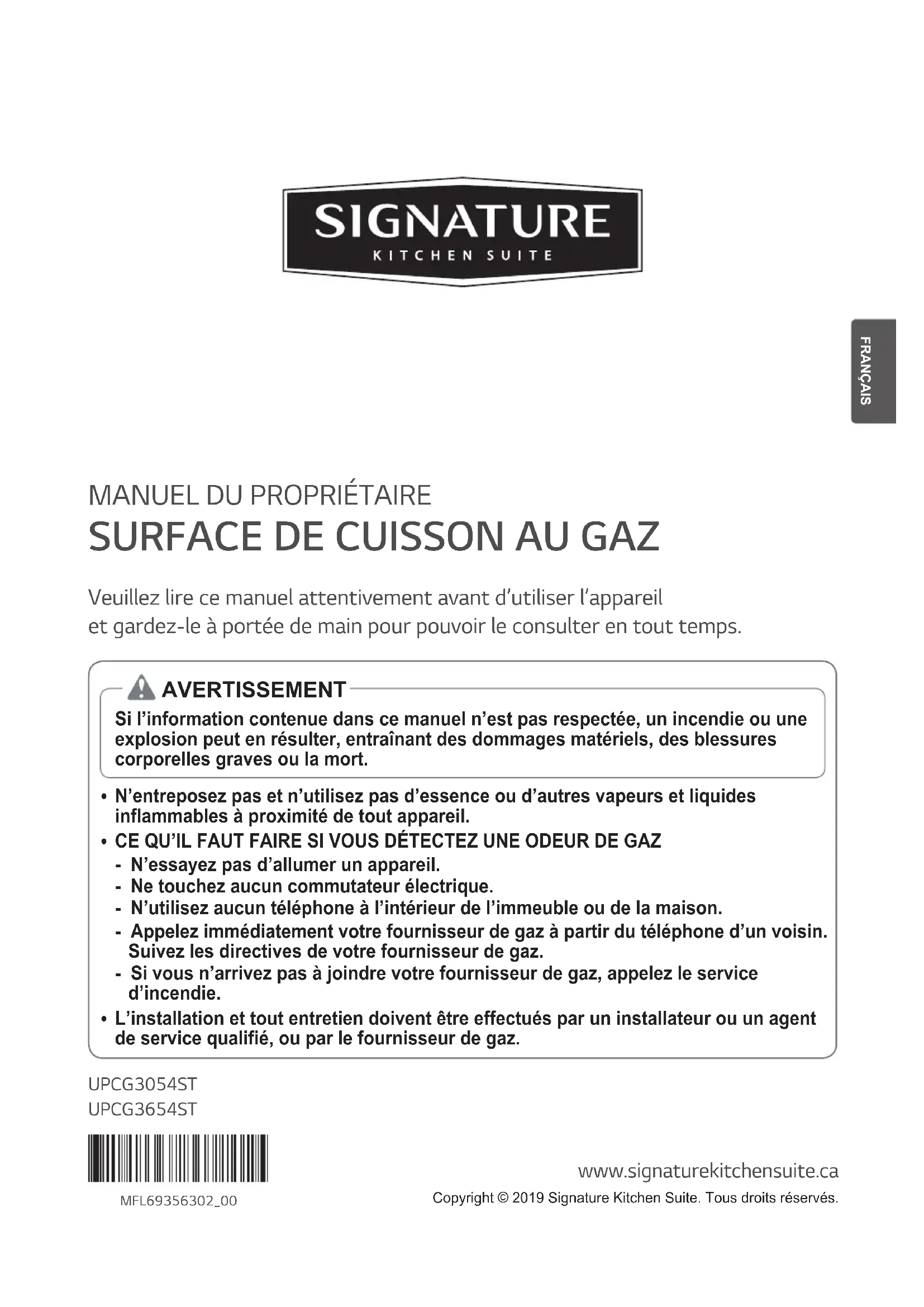 Veuillez lire ce manuel attentivement avant d’utiliser l’appareil et gardez-le à portée de main pour pouvoir le consulter en tout temps. www.signaturekitchensuite.ca MFL69356302_00Copyright © 2019 Signature Kitchen Suite. Tous droits réservés.2