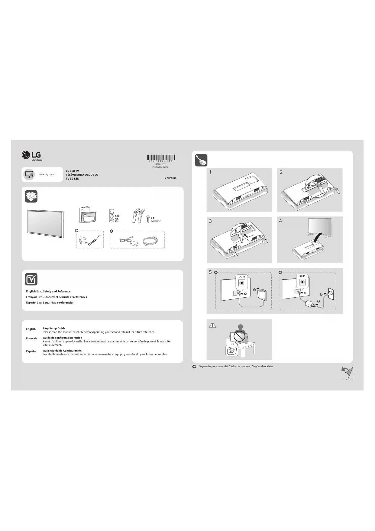 - Téléviseur à DEL de LG s’applique à l’écran ACL avec rétroéclairage à DEL. Veuillez lire ce manuel attentivement avant d’utiliser l’appareil et conservez-le pour pouvoir vous y reporter ultérieurement.