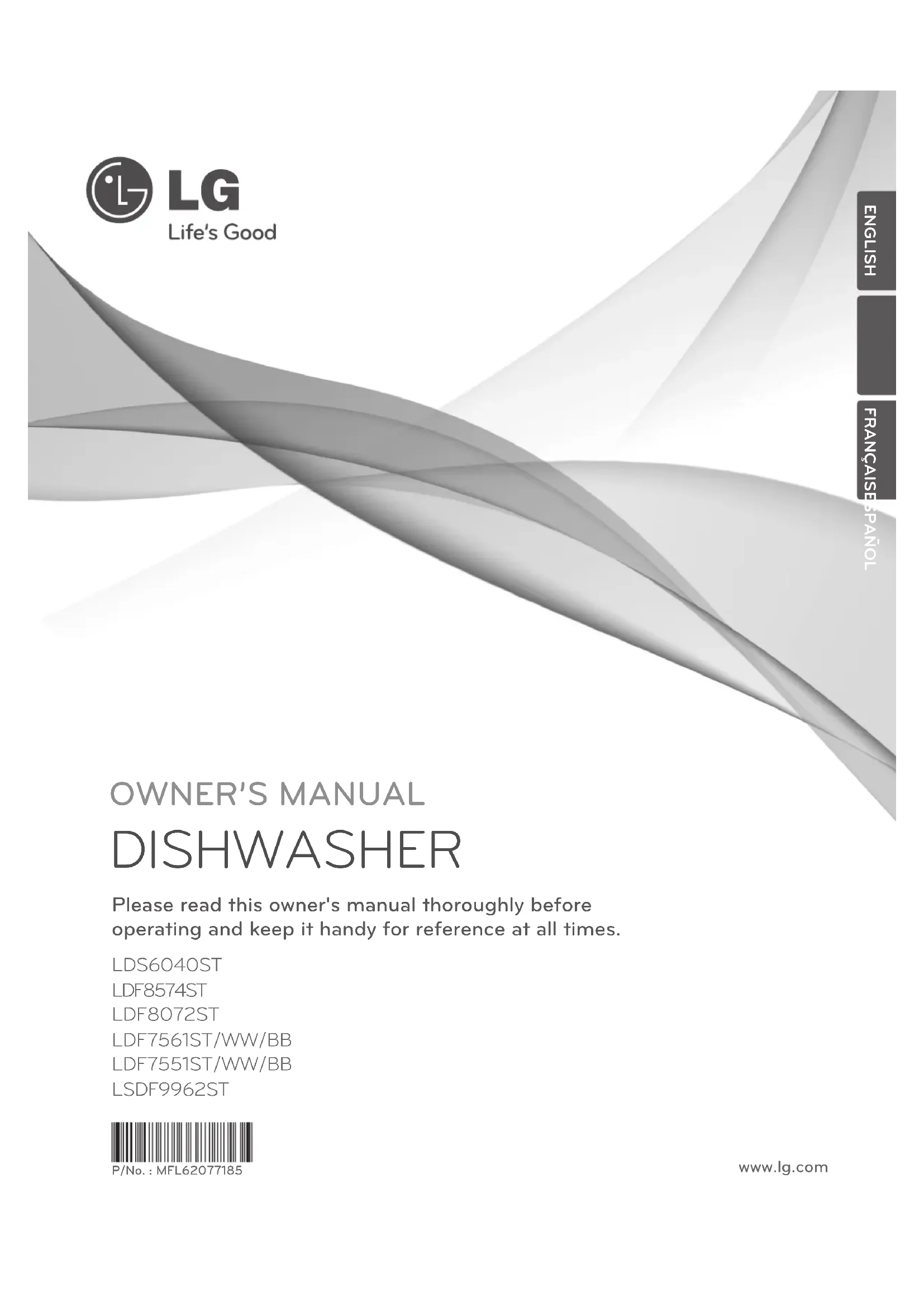 LAVE-VAISSELLE Veuillez lire attentivement ce manuel du propriétaire avant de mettre l'appareil en fonctionnement, et le garder toujours à portée. LDS6040ST LDF8574ST LDF8072ST