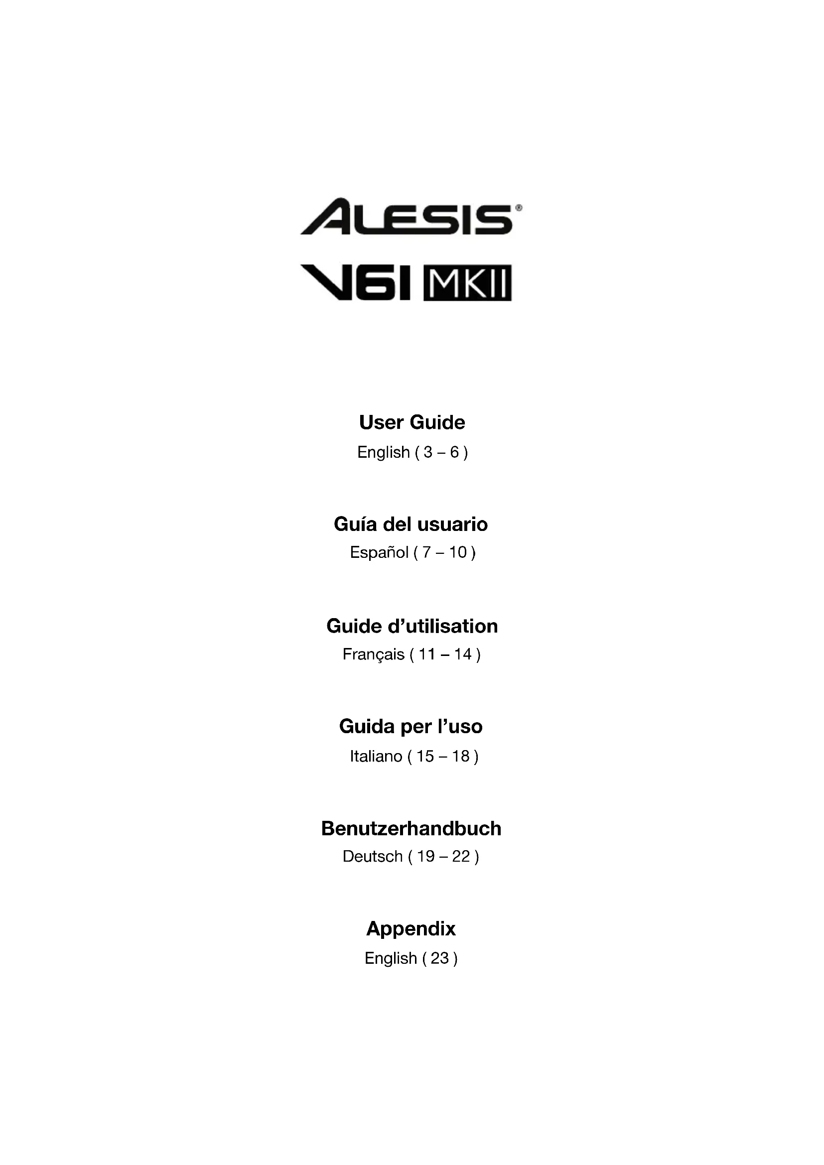 Retrouvez gratuitement la notice de l'appareil V61 MKII ALESIS au format PDF.