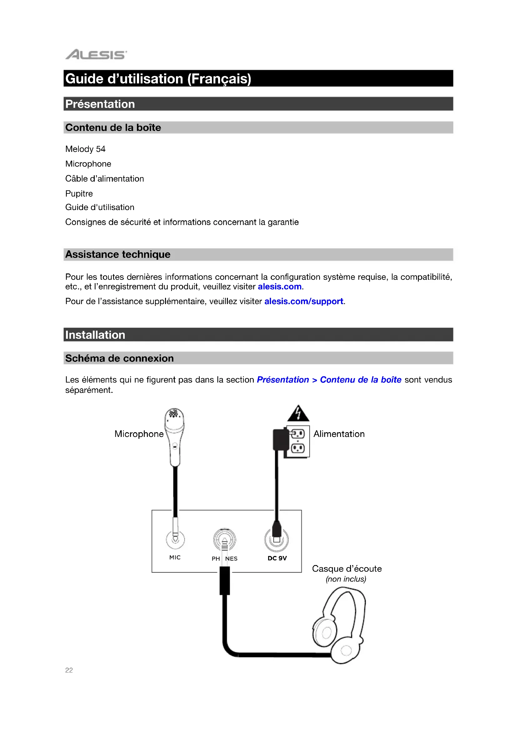 Pour de l'assistance supplémentaire, veuillez visitor alesis.com/support.