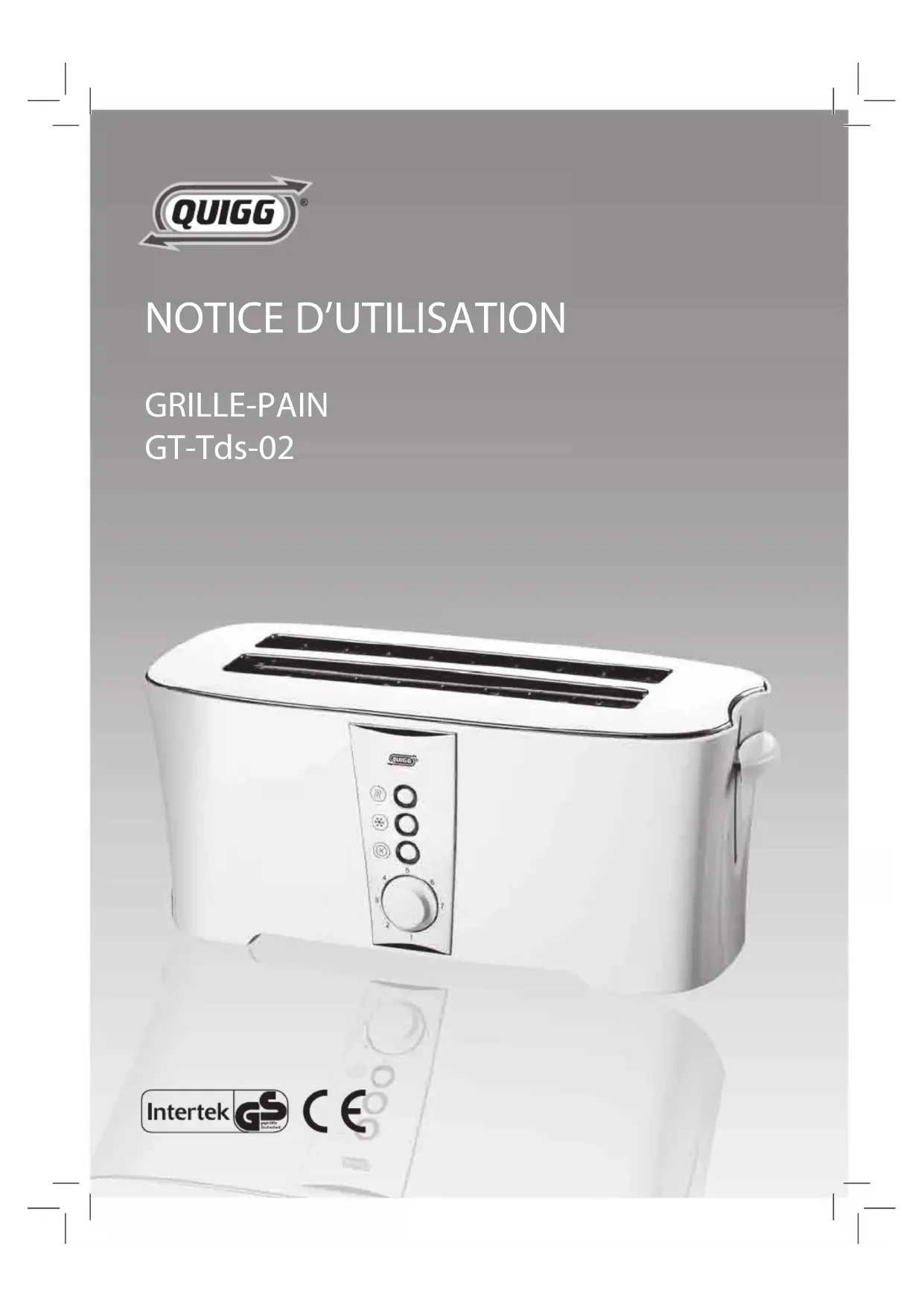 Retrouvez gratuitement la notice de l'appareil GTTds02 QUIGG au format PDF.
