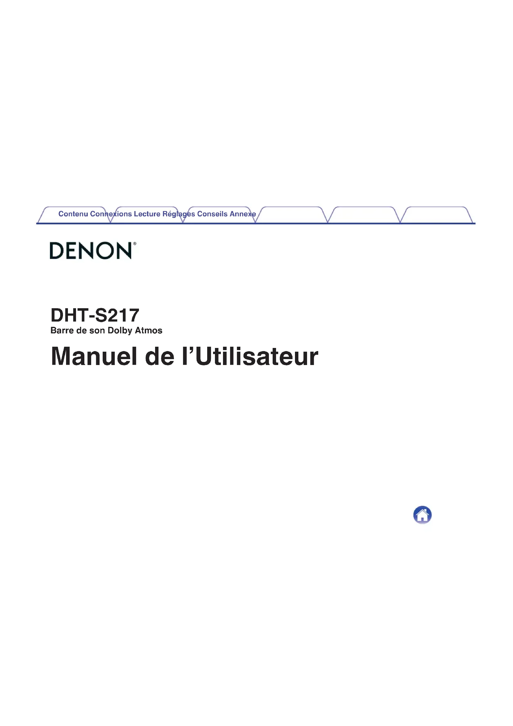 DHT-S217 Barre de son Dolby Atmos Manuel de l’Utilisateur Contenu Connexions Lecture Réglages Conseils Annexe 1À propos des manuels