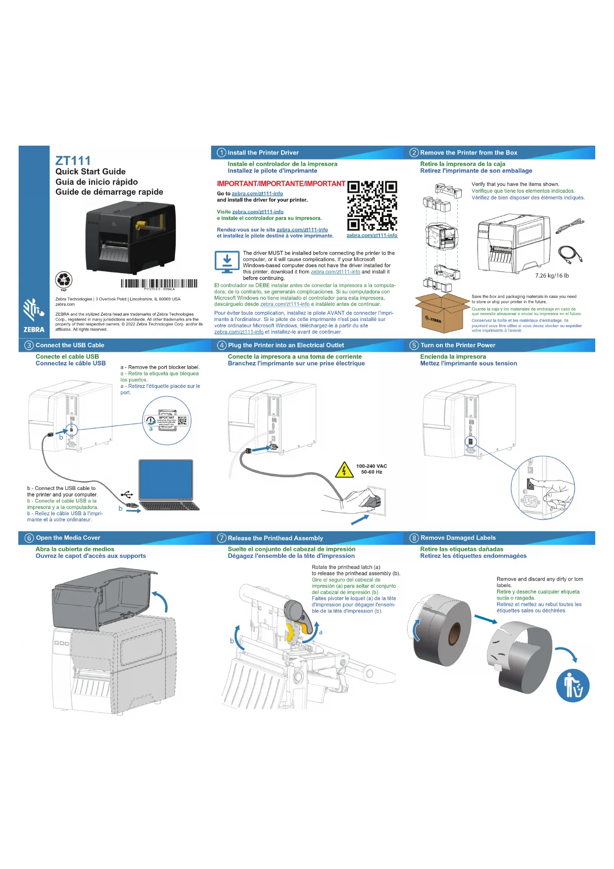 Retrouvez gratuitement la notice de l'appareil ZT111 ZEBRA au format PDF.