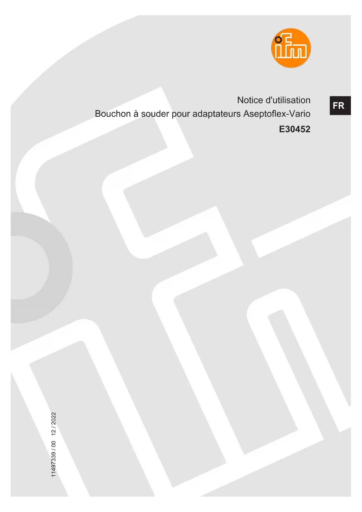 Notice d'utilisation Bouchon à souder pour adaptateurs Aseptoflex-Vario E30452 11497339 / 0012 / 2022 FRE30452 Bouchon à souder pour adaptateurs Aseptoflex-Vario