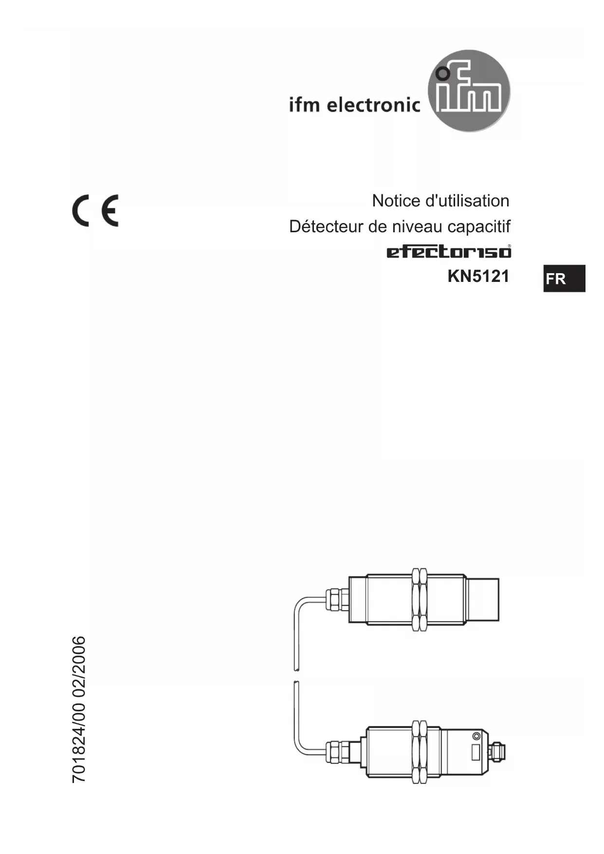 Notice d'utilisation Détecteur de niveau capacitif KN5121 701824/00 02/2006 FR2 Contenu 1 Remarque préliminaire 3 2 Consignes de sécurité 3 3 Fonctionnement et caractéristiques 3 4 Montage 4 5 Raccordement électrique 5 51 Réglage de la fonction de sortie en normalement fermé ou normalement ouvert5 52 Sortie contrôle de fonction / entrée de programmation 6 521 Signaux sur la sortie contrôle de fonction 6 522 Entrée de programmation 6 6 Manipulation 6 61 Programmation 7 611 Réglage vide 7 612 Réglage plein 8 613 Verrouiller 9 614 Déverrouiller 10 615 Messages d'erreur 10 7 Fonctionnement 11 8 Maintenance, réparation et élimination 12 9 Données techniques 123