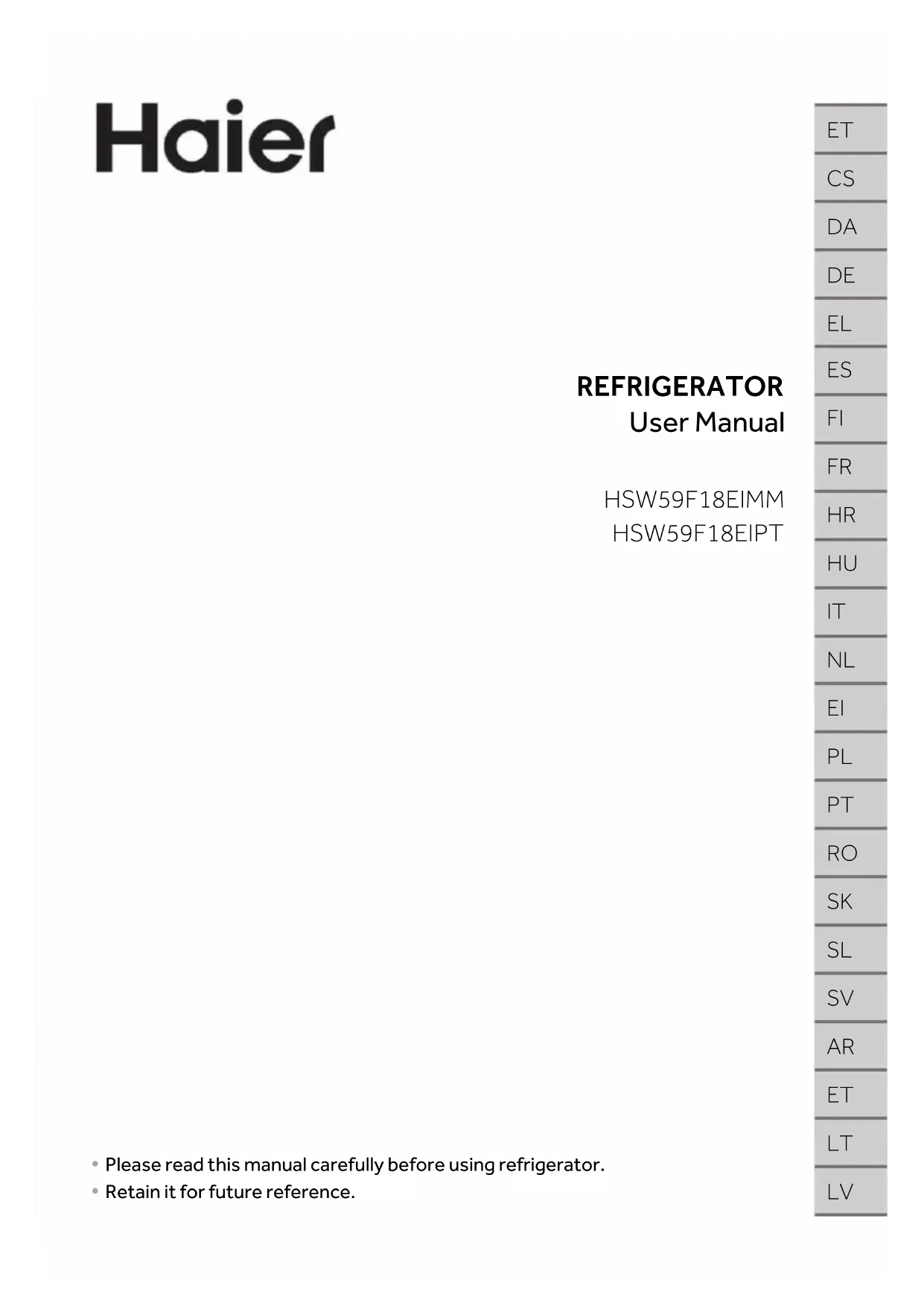 HSR5918DIMP - Réfrigérateur HAIER - Notice d'utilisation et mode d'emploi gratuit