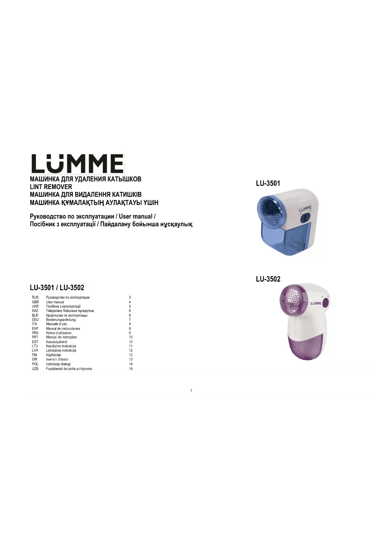Retrouvez gratuitement la notice de l'appareil LU3502 LUMME au format PDF.