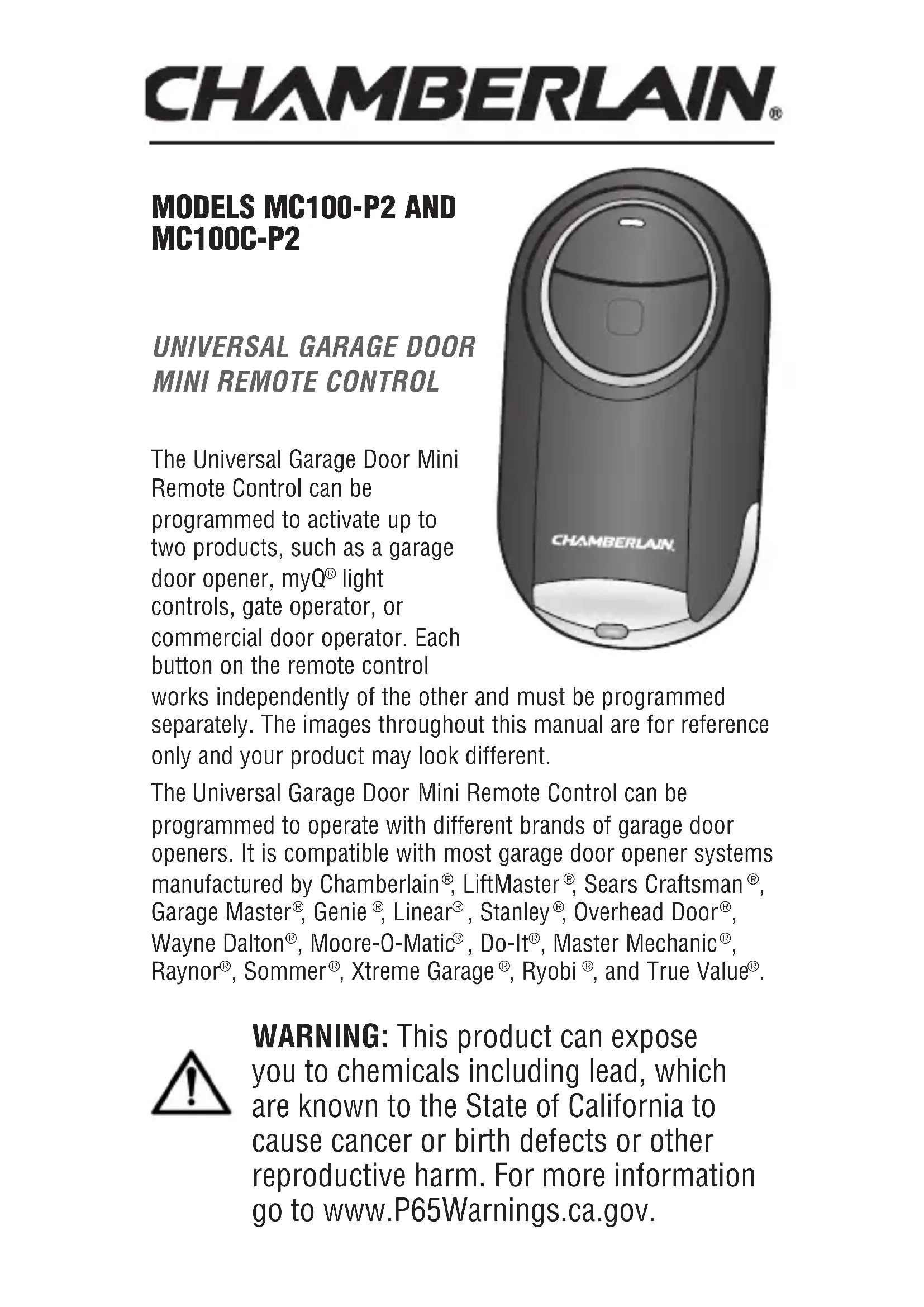 Retrouvez gratuitement la notice de l'appareil MC100CP2 CHAMBERLAIN au format PDF.