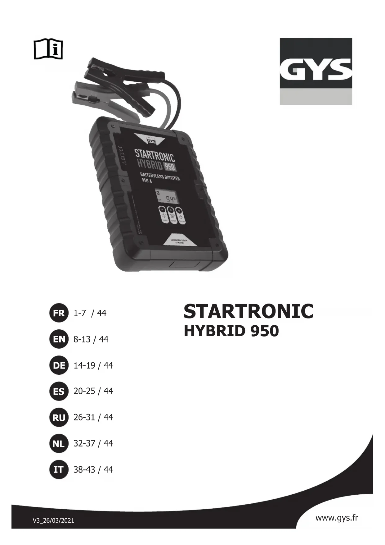 Retrouvez gratuitement la notice de l'appareil Startronic Hybrid 950 GYS au format PDF.