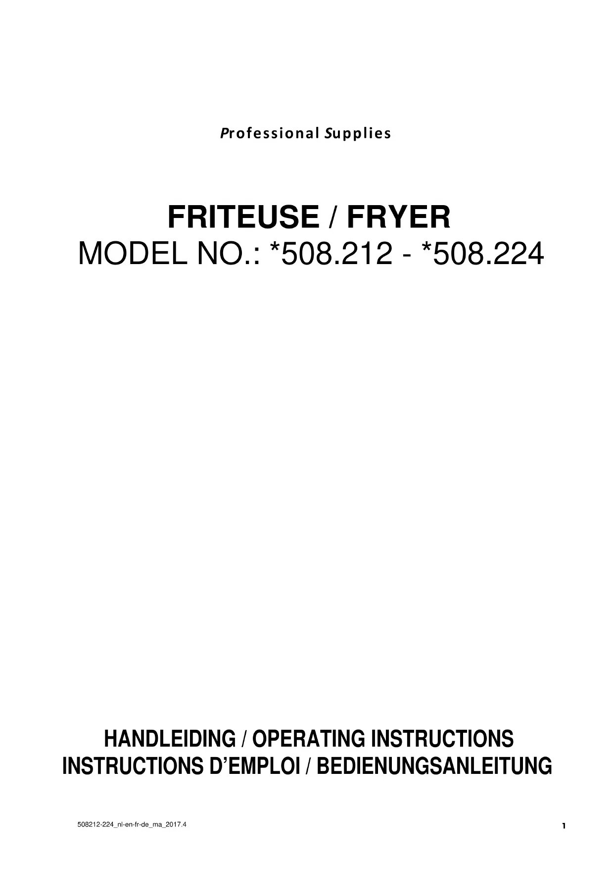 508212-224_nl-en-fr-de_ma_2017.4PRÉCAUTION D’EMPLOI Lire attentivement les instructions contenues dans ce manuel. Conserver e manuel pour que les futurs utilisateurs puissent le consulter aisément. Avant de brancher l’appareil, contrôler que les données reportées sur la plaquette technique (figure 1) correspondent à celles du réseau de distribution électrique. Avant de commencer n’importe quelle opération, débrancher l’appareil du réseau électrique. L’installation doit être effectuée par du personnel spécialisé et conformément aux instructions du constructeur et aux normes en vigueur. L’appareil doit être placé sous une hotte aspirante conforme aux normes UNI-GIG 7120 et 8723. Cet appareil ne doit être utilisé que pour frire des aliments dans de l’huile. Le fabricant décline toute responsabilité en cas de: