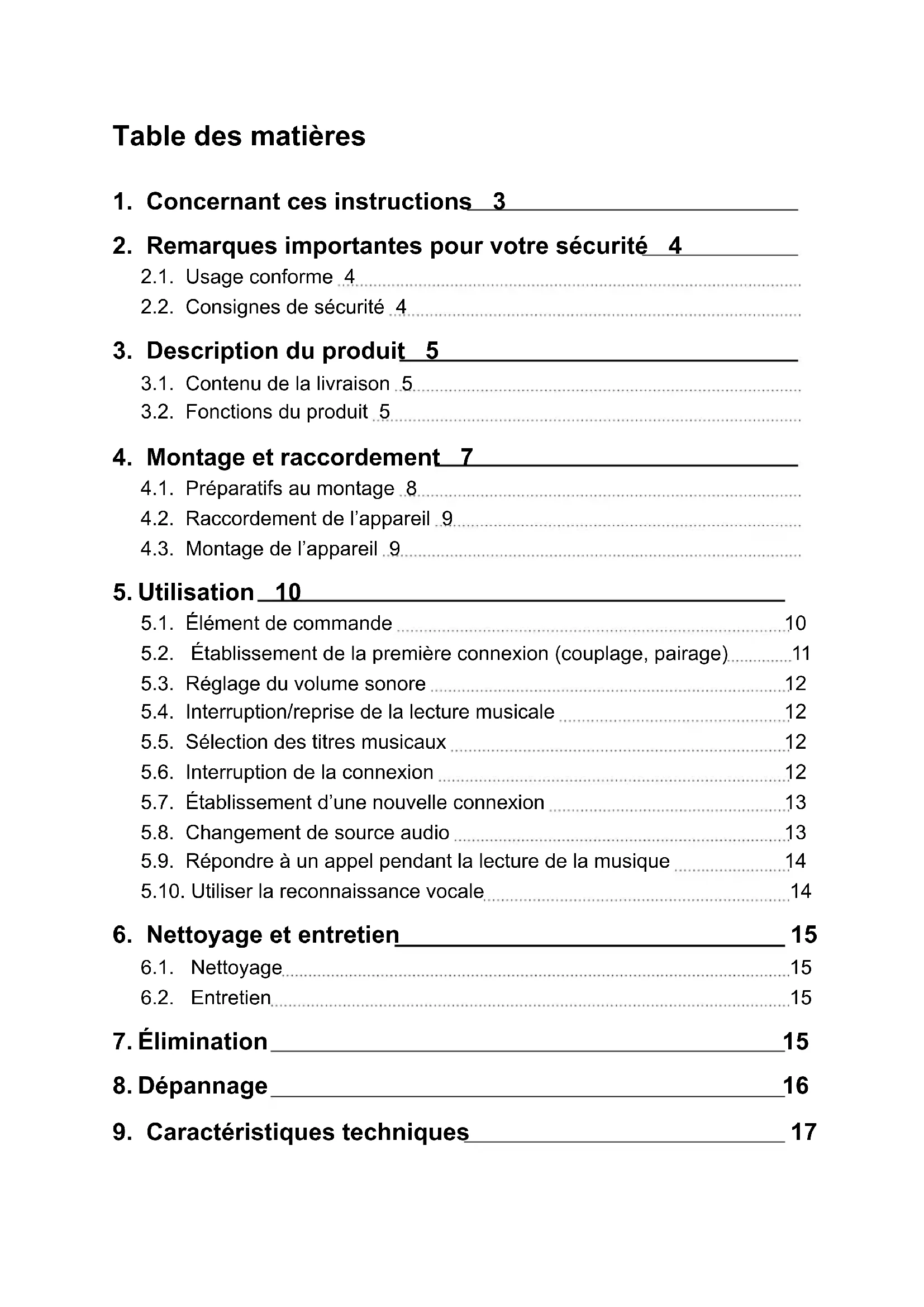 9. Caractéristiques techniques à la page 17 doivent être respectées.