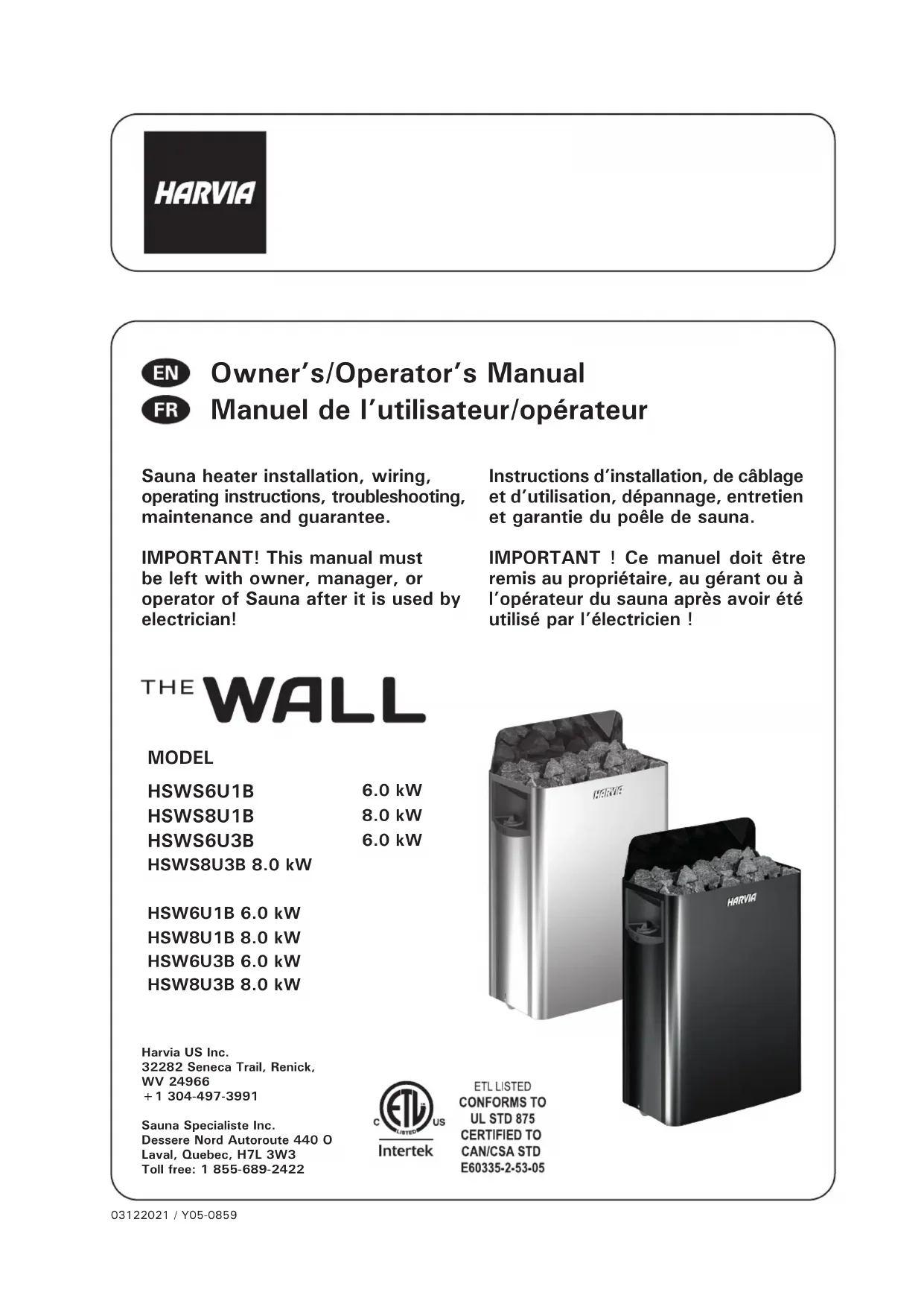 Retrouvez gratuitement la notice de l'appareil The Wall SW60 HSW6U3B HARVIA au format PDF.