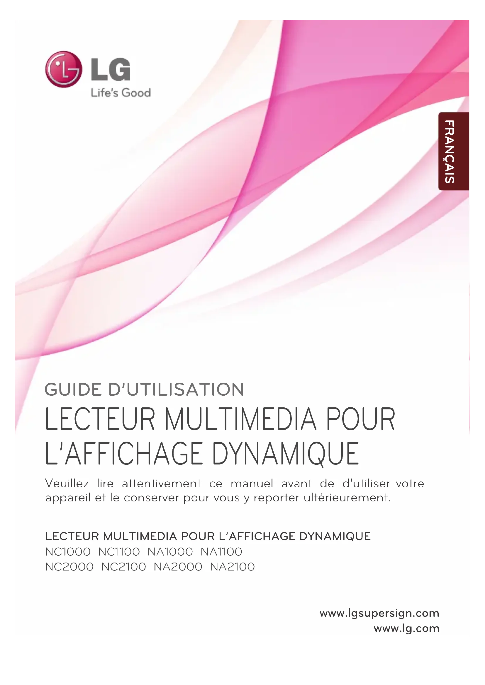 NC1000 NC1100 NA1000 NA1100 NC2000 NC2100 NA2000 NA2100 www.lgsupersign.com www.lg.com Veuillez lire attentivement ce manuel avant de d’utiliser votre appareil et le conserver pour vous y reporter ultérieurement. FRANÇAIS