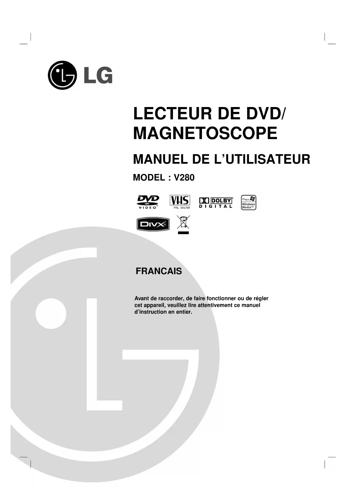 V280S - Lecteur dvd LG - Notice d'utilisation et mode d'emploi gratuit