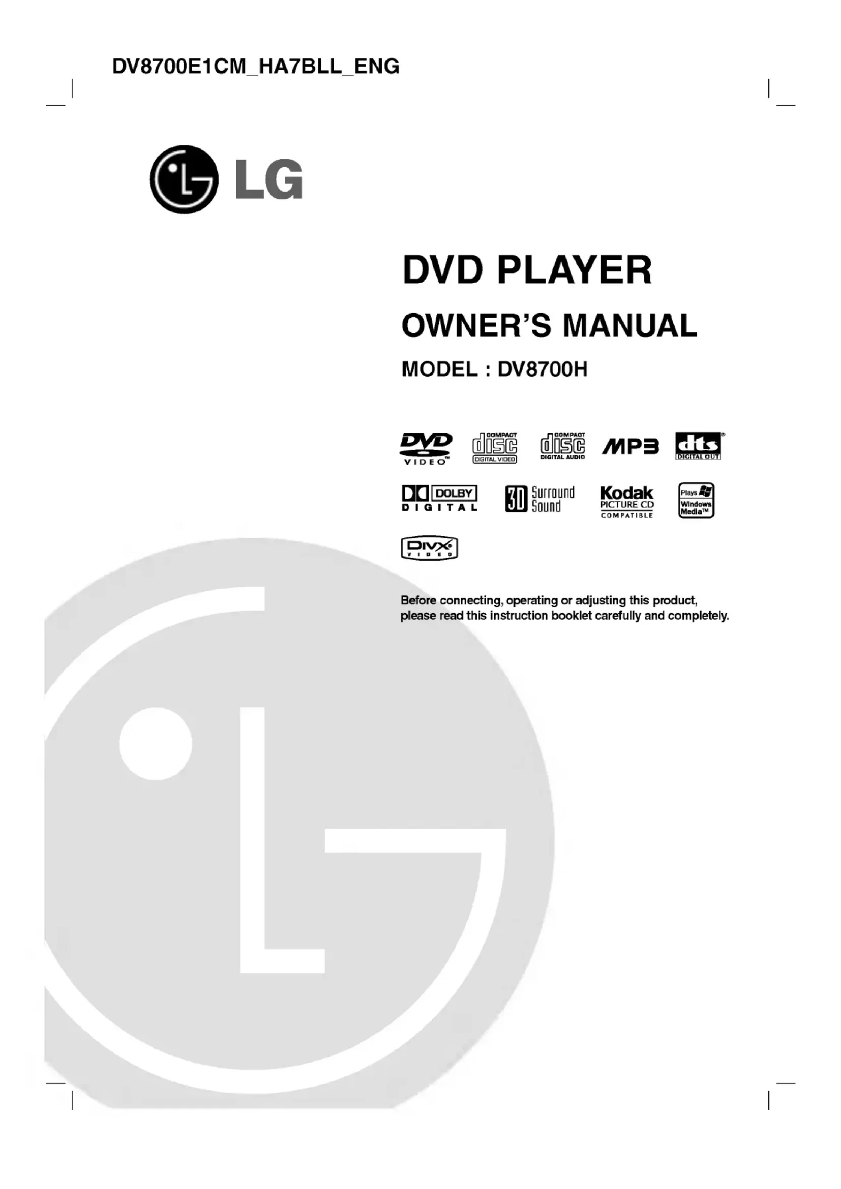 DV8700E4CM - Lecteur dvd LG - Notice d'utilisation et mode d'emploi gratuit